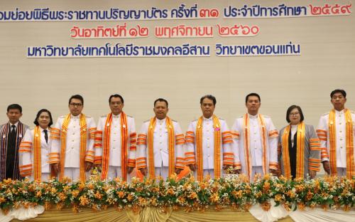 เมื่อวันที่ 12 พฤศจิกายน 2560 มหาวิทยาลัยเทคโนโลยีราชมงคลอีสาน วิทยาเขตขอนแก่น ได้จัดพิธีซ้อมย่อยการรับพระราชทานปริญญาบัตรครั้งที่ 31 ประจำปีการศึกษา 2559 เวลา 11.00 น. บัณฑิตตั้งแถวเข้าสู่ห้องประชุมชั้น 3 อาคาร 50 ปี เทคนิคไทย-เยอรมัน ขอนแก่น โดยได้รับเกียรติจาก ผู้ช่วยศาสตราจารย์ วิชยุทธ จันทะรี รองอธิการบดีประจำวิทยาเขตขอนแก่น กล่าวต้อนรับบัณฑิต และคณบดีทั้ง 3 คณะฯ ผู้ช่วยศาสตราจารย์ ดร.วิชิต สุทธิพร คณบดีคณะครุศาสตร์อุตสาหกรรม ดร.ปภาวิน พัชรโชติสุธี คณบดีคณะบริหารธุรกิจและเทคโนโลยีสารสนเทศ และนายปริญ นาชัยสิทธิ์ คณบดีคณะวิศวกรรมศาสตร์ กล่าวแสดงความยินดีแก่บัณฑิต จากนั้นเป็นการรับฟังคำชี้แจงและการฝึกซ้อมตามลำดับ บรรยากาศเป็นไปด้วยความเรียบร้อยและความปิติยินดี