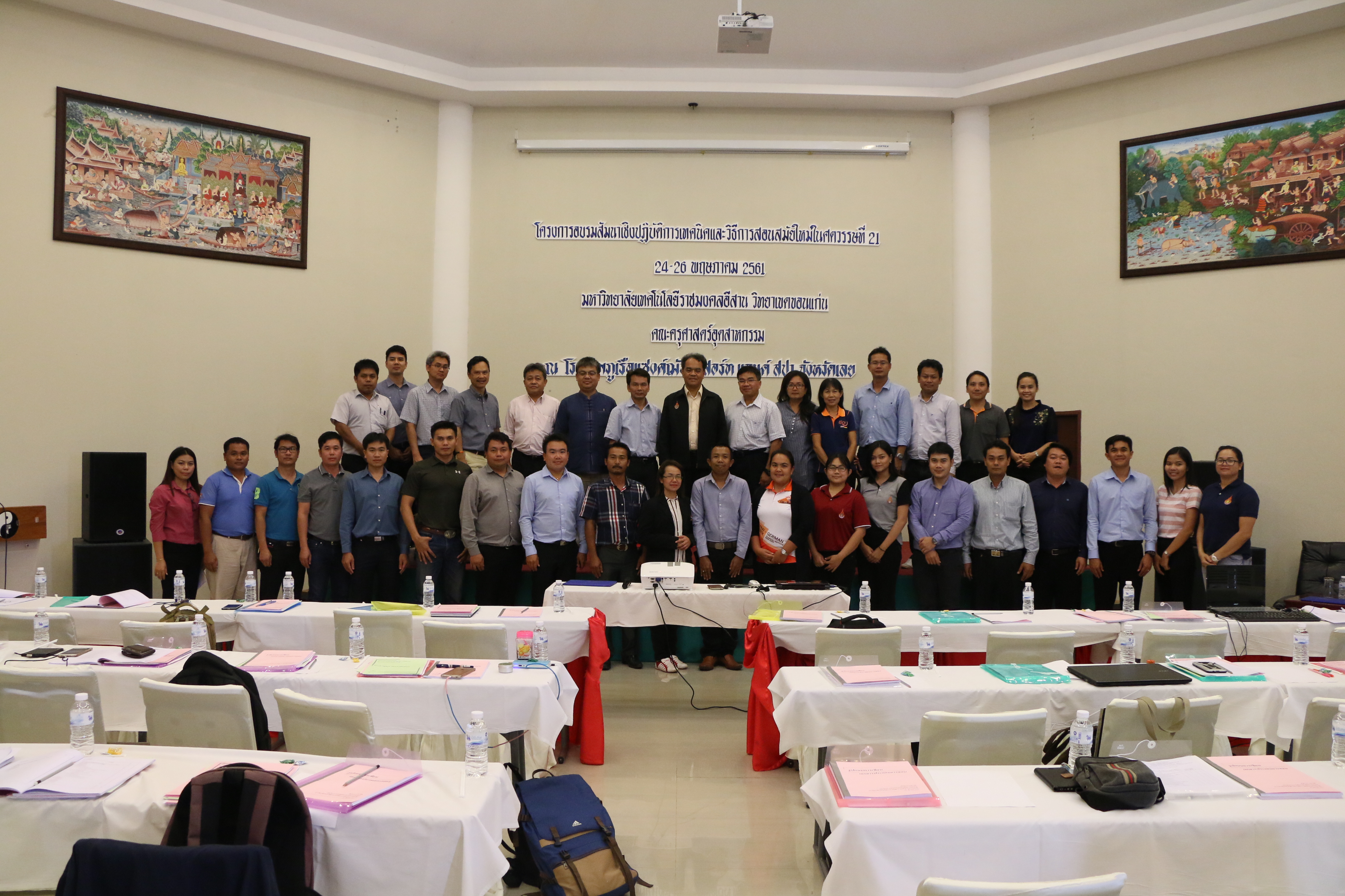 ระหว่างวันที่ 24 – 26 พฤษภาคม 2561 คณะครุศาสตร์อุตสาหกรรม มหาวิทยาลัยเทคโนโลยีราชมงคลอีสาน วิทยาเขตขอนแก่น จัดโครงการอบรมสัมมนาเชิงปฏิบัติการเทคนิคและวิธีการสอนสมัยใหม่ในศตวรรษที่ 21 ณ โรงแรม ภูเรือ แซงค์ฌัวรี รีสอร์ท  แอนด์ สปา อำเภอภูเรือ จังหวัดเลย โดยได้รับเกียรติจาก ผู้ช่วยศาสตราจารย์ ดร.วิชิต สุทธิพร คณบดีคณะครุศาสตร์อุตสาหกรรม เป็นประธานในพิธีเปิดและได้รับความอนุเคราะห์เป็นวิทยากรร่วมกับผู้ช่วยศาสตราจารย์ ดร.สมศักดิ์ ธนพุทธิวิโรจน์ รองคณบดีฝ่ายแผนและประกันคุณภาพการศึกษา และดร.ภูกิจ คุณเจริญหิรัญ รองคณบดีฝ่ายบริหาร ซึ่งการจัดโครงการฯมีวัตถุประสงค์เพื่อมุ่งเน้นในการพัฒนาครูช่างและครูฝึกช่างเทคนิคขั้นสูง ให้มีความรู้ความสามารถและเชี่ยวชาญเทคโนโลยีเฉพาะทางในการผลิตช่างฝีมือ รวมทั้งการนำทักษะในศตวรรษที่ 21 ด้านการเรียนรู้และนวัตกรรม ทั้งด้านการอ่าน การเขียน การคิดวิเคราะห์ การสื่อสาร การร่วมมือและความคิดสร้างสรรค์ และการปรับกลวิธีในการเรียนการสอนให้มีคุณภาพ