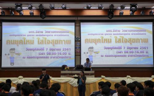 วันที่ 7 มิถุนายน 2561 คณะครุศาสตร์อุตสาหกรรม มหาวิทยาลัยเทคโนโลยีราชมงคลอีสาน วิทยาเขตขอนแก่น เข้าร่วมโครงการคนยุคใหม่ ใส่ใจสุขภาพ ณ ห้องประชุมแคแสด โดยได้รับความอนุเคราะห์วิทยากรจาก คลินิกส่งเสริมสุขภาพ โรงพยาบาลส่งเสริมสุขภาพ ศูนย์อนามัยที่ 7 ขอนแก่น บรรยายให้ความรู้ โอกาสนี้อาจารย์ประพันธ์ ยาวระ รองคณบดีฝ่ายพัฒนานักศึกษา เป็นตัวแทนคณะฯรับมอบป้ายรณรงค์ลดละเลิกอบายมุข จากรองอธิการบดีประจำวิทยาเขตขอนแก่น พร้อมด้วยผู้บริการศูนย์อนามัยที่ 7 ขอนแก่น เพื่อเป็นการสร้างจิตสำนึกที่ดี