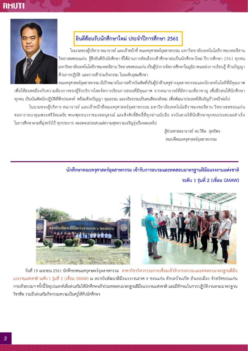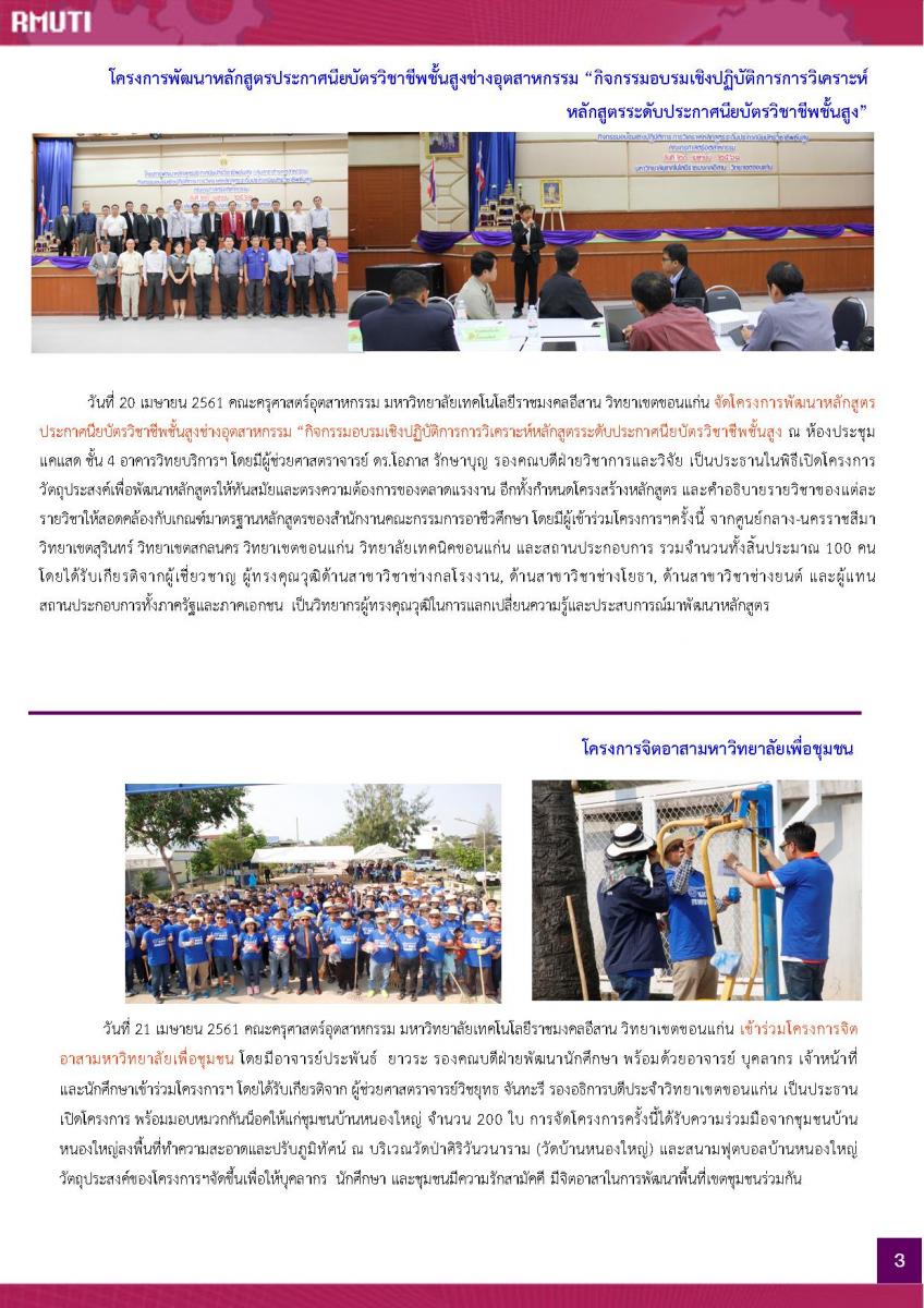 จดหมายข่าว คณะครุศาสตร์อุตสาหกรรม ฉบับที่ 3 ประจำ เดือนเมษายน - มิถุนายน 2561