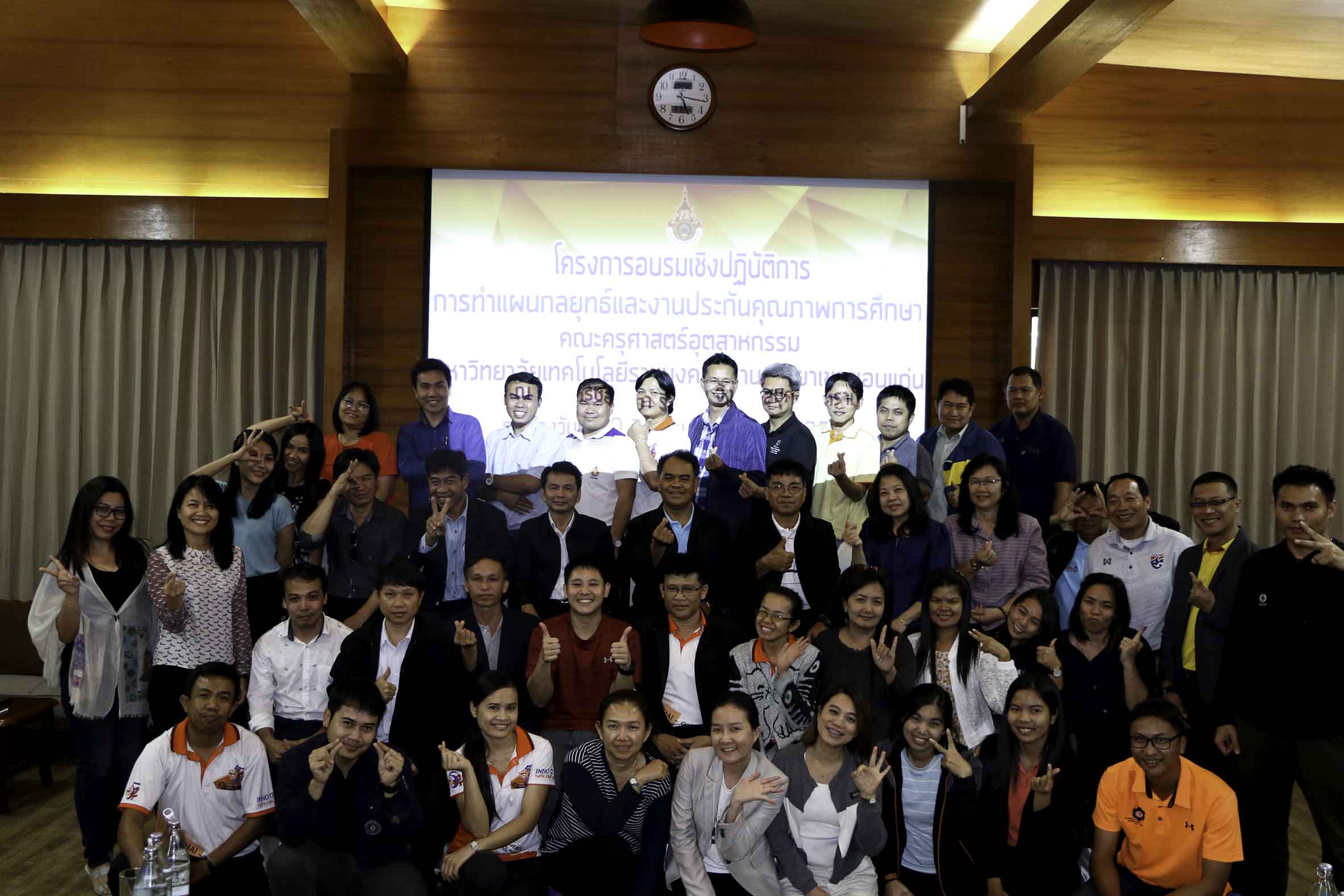 ระหว่างวันที่ 30 สิงหาคม – 1 กันยายน 2561 คณะครุศาสตร์อุตสาหกรรม มหาวิทยาลัยเทคโนโลยีราชมงคลอีสาน วิทยาเขตขอนแก่น จัดโครงการอบรมเชิงปฏิบัติการการทำแผนกลยุทธ์และงานประกันคุณภาพการศึกษา ณ เดอะเกรซอัมพวา รีสอร์ท จังหวัดสมุทรสงคราม มีวัตถุประสงค์เพื่อเพิ่มศักยภาพการจัดทำแผนงานและงบประมาณและแผนประกันคุณภาพการศึกษาของคณะฯ และสาขาวิชา ให้สอดคล้องกับยุทธศาสตร์การพัฒนามหาวิทยาลัยและประเทศ ผู้เข้าร่วมโครงการฯ ประกอบด้วย ผู้บริหาร อาจารย์ และบุคลากรสายสนับสนุน จำนวน 46 คน จากการดำเนินโครงการฯในครั้งนี้ได้ร่างแผนยุทธศาสตร์คณะฯ ที่สอดคล้องกับยุทธศาสตร์มหาวิทยาลัยฯ และร่วมวางแผนการทำงานในเชิงรุก