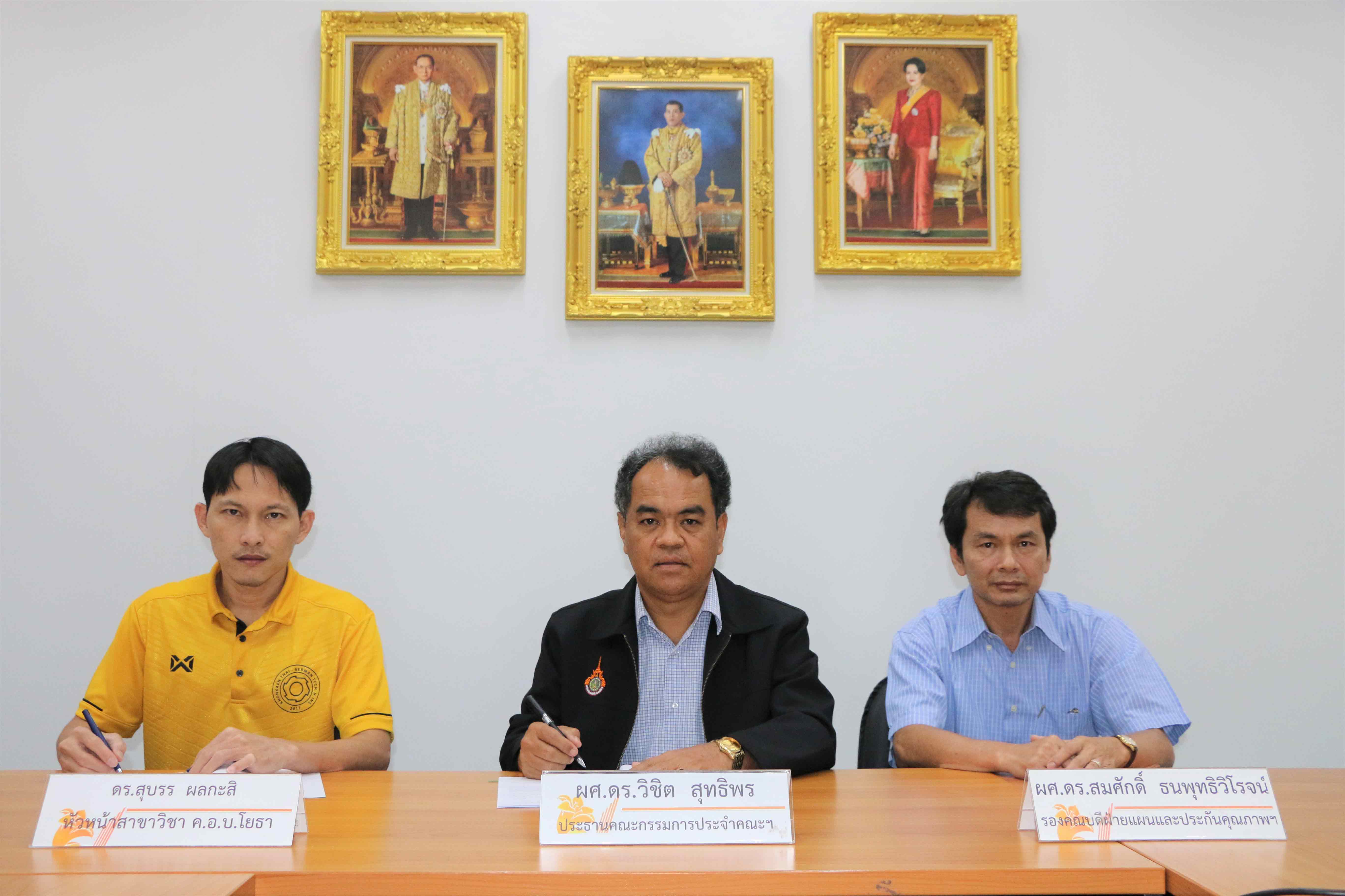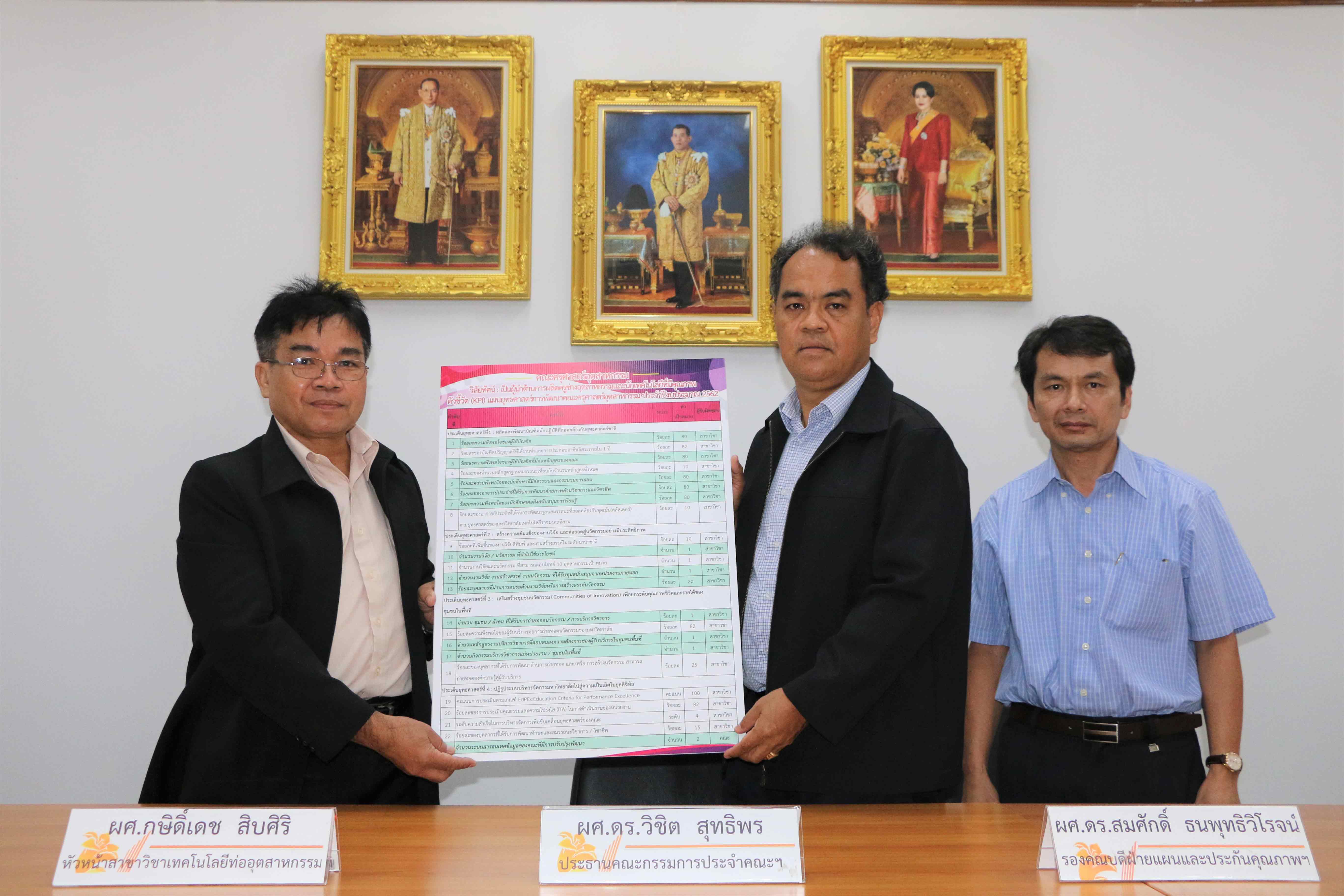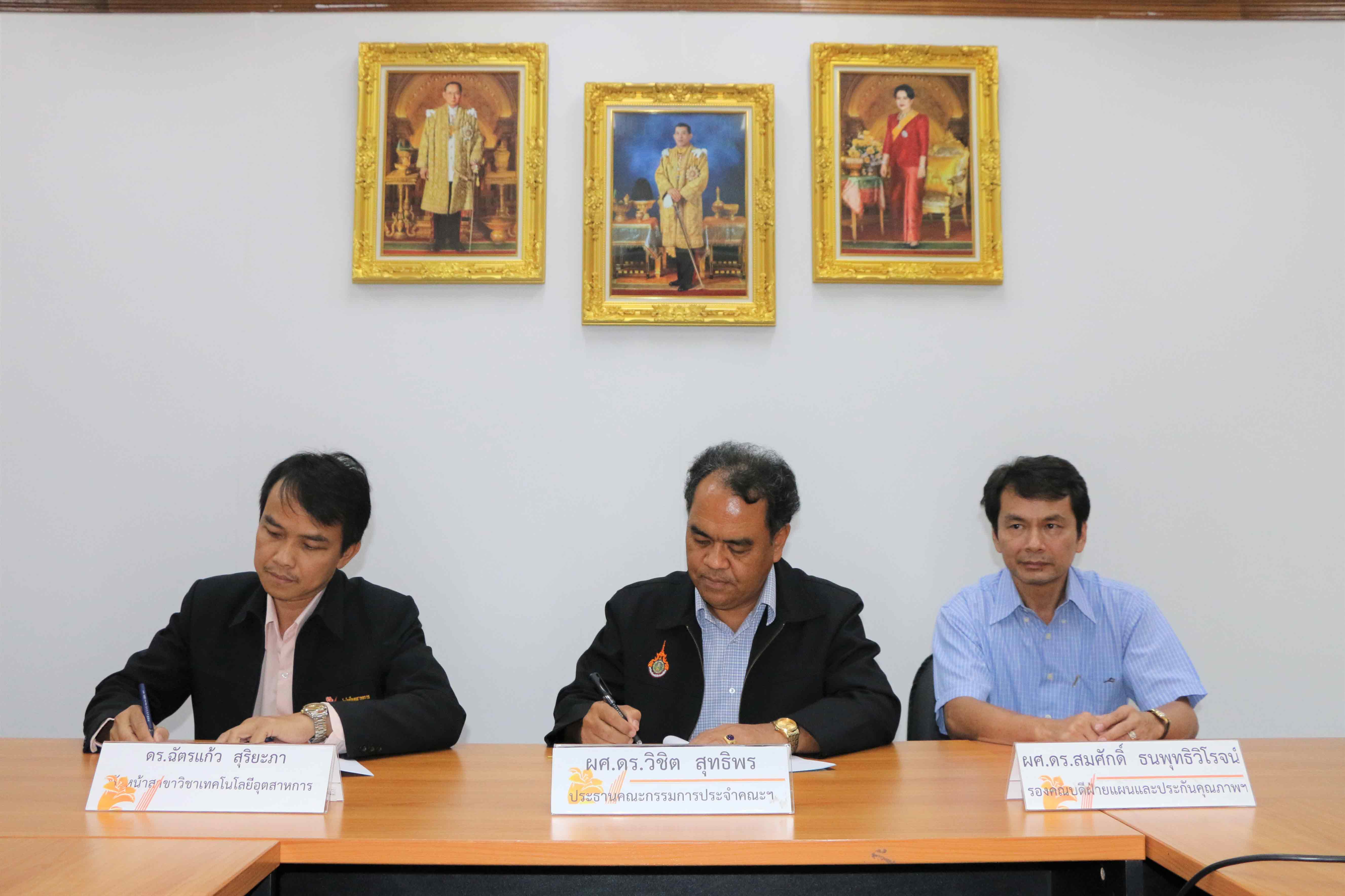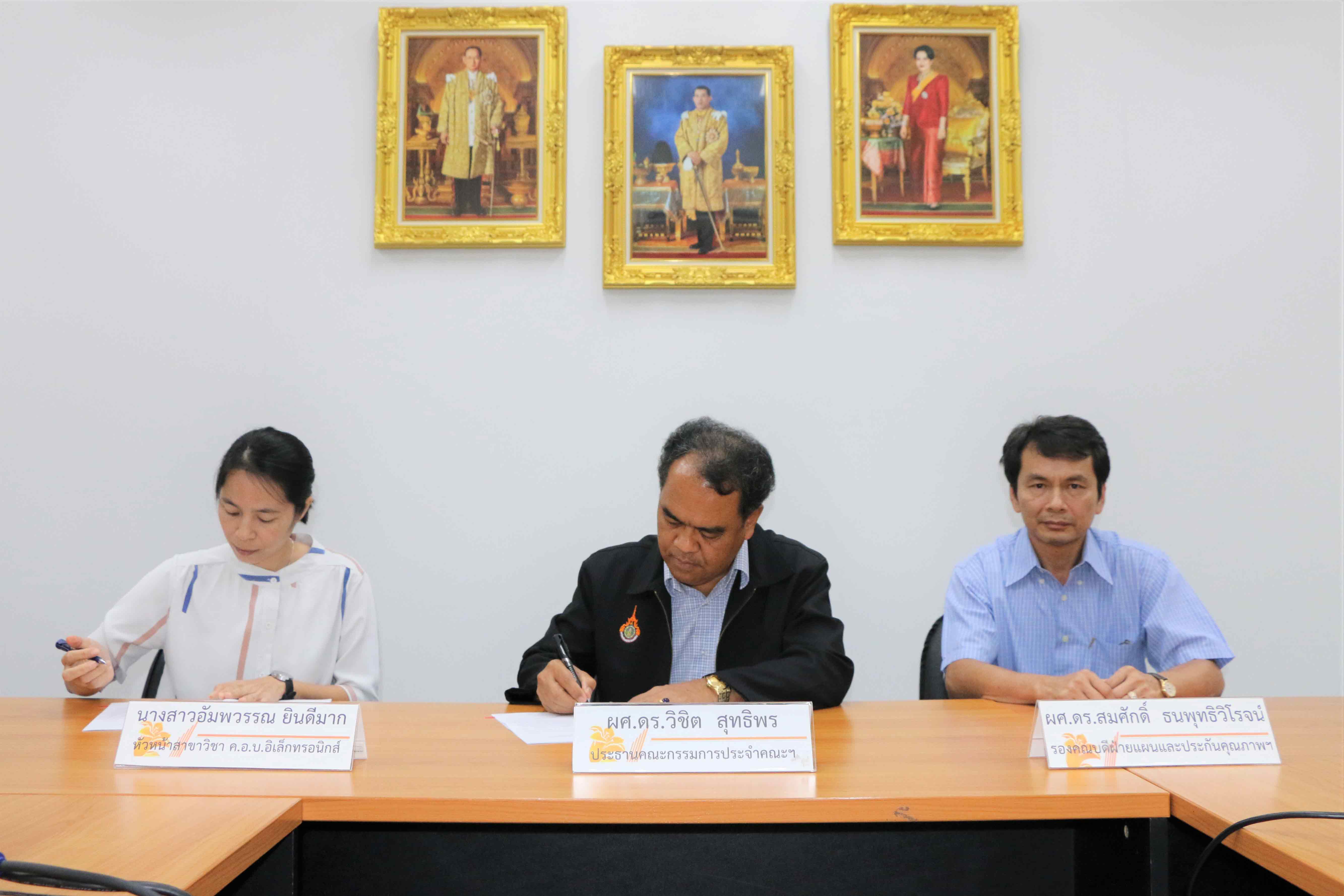 วันจันทร์ที่ 12 พฤศจิกายน 2561 ประชุมคณะกรรมการประจำคณะครุศาสตร์อุตสาหกรรม ครั้งที่ 9 /2561 ณ ห้องประชุมสำนักงานคณบดีคณะครุศาสตร์อุตสาหกรรม อาคาร 7 ชั้น 2 โดยมีผู้ช่วยศาสตราจารย์ ดร.วิชิต สุทธิพร คณบดีคณะครุศาสตร์อุตสาหกรรม เป็นประธานในการประชุมคณะกรรมการ พร้อมเซ็นต์คำรับรองการปฏิบัติราชการตามยุทธศาสตร์การพัฒนาคณะครุศาสตร์อุตสาหกรรม ประจำปีงบประมาณ 2562 ระหว่างคณบดีฯกับหัวหน้าสาขาวิชา โดยมีผู้ช่วยศาสตราจารย์ ดร.สมศักดิ์ ธนพุทธิวิโรจน์ รองคณบดีฝ่ายแผนและประกันคุณภาพการศึกษา เป็นพยานการเซ็นต์คำรับรองการปฏิบัติราชการตามยุทธศาสตร์ฯ เพื่อให้สาขาวิชามุ่งมั่นปฏิบัติราชการ ให้เกิดผลงานที่ดีตามเป้าหมายตัวชี้วัดในระดับสูงสุด