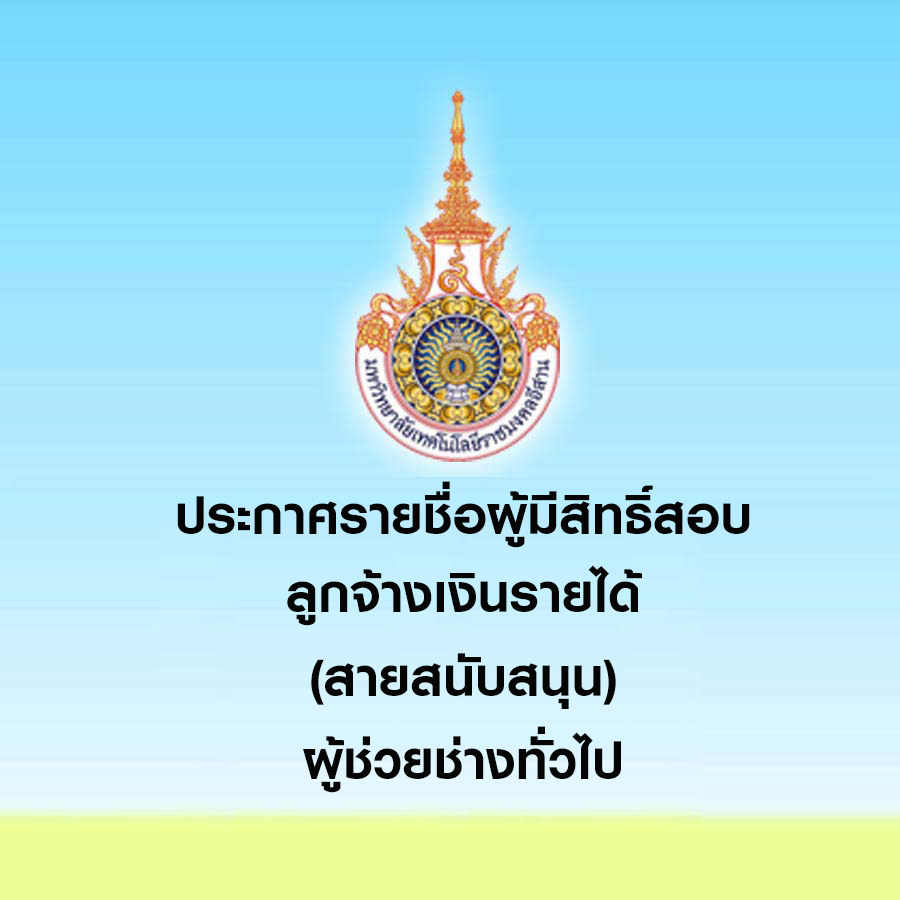 ประกาศรายชื่อผู้มีสิทธิ์สอบคัดเลือกบุคคลเพื่อจ้างเป็นลูกจ้างเงินรายได้ (ผู้ช่วยช่างทั่วไป) คณะครุศาสตร์อุตสาหกรรม