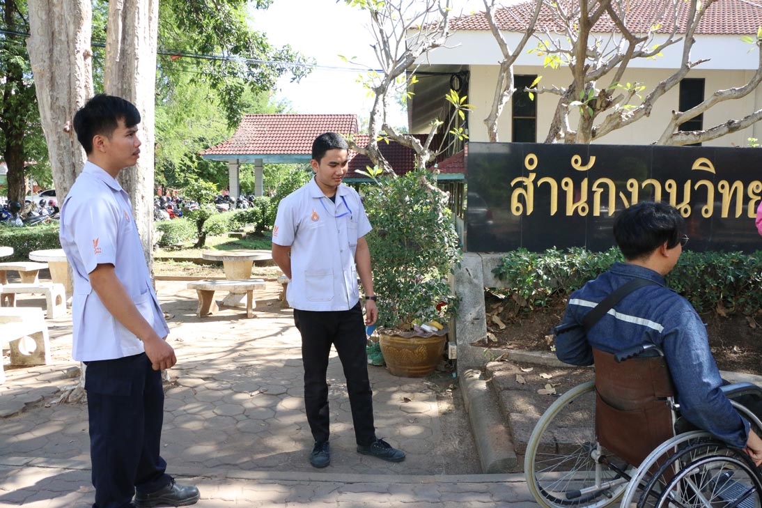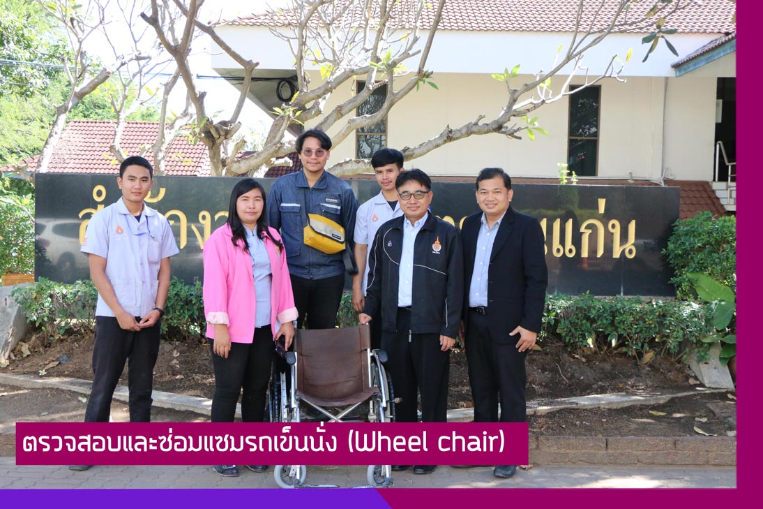 วันที่ 17 ธันวาคม 2561 คณะครุศาสตร์อุตสาหกรรม ร่วมกับศูนย์บริการทางวิชาการและทดสอบมหาวิทยาลัยเทคโนโลยีราชมงคลอีสาน วิทยาเขตขอนแก่น โดยมีอาจารย์ประพันธ์ ยาวระ รองคณบดีฝ่ายพัฒนานักศึกษา อาจารย์ปริญญาวัตร ทินบุตร อาจารย์ประจำสาขาครุศาสตร์อุตสาหกรรมเชื่อมประกอบ และนักศึกษา รับความอนุเคราะห์จากสำนักการสาธารณสุขและสิ่งแวดล้อม เทศบาลนครขอนแก่น ในการตรวจสอบและซ่อมแซมรถเข็นนั่ง (Wheel chair)