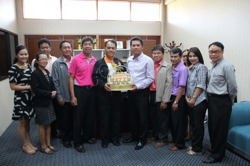 นำโดยผู้ช่วยศาสตราจารย์ ดร.วิชิต สุทธิพร คณบดีคณะครุศาสตร์อุตสาหกรรม เข้ามอบกระเช้าของขวัญสวัสดีปีใหม่