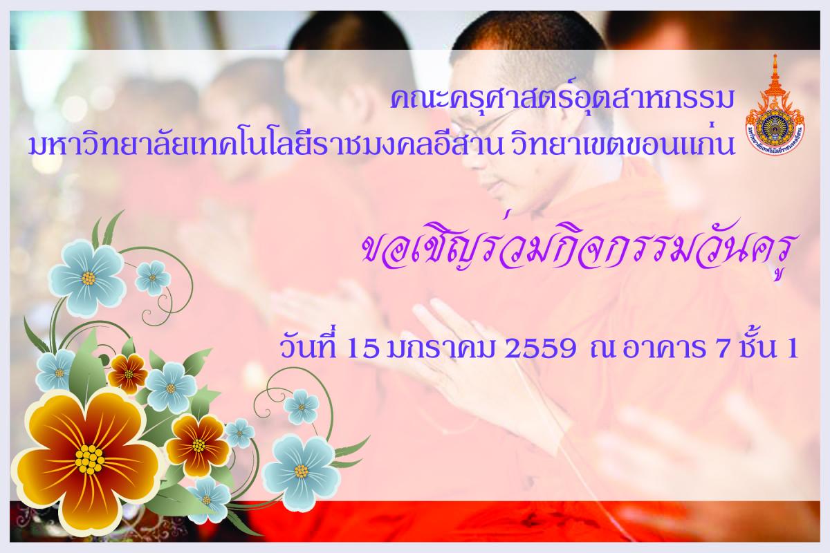 คณะครุศาสตร์อุตสาหกรรม ขอเรียนเชิญ คณาจารย์ เจ้าหน้าที่ นักศึกษา ทุกท่าน เข้าร่วมกิจกรรม วันครู คณะครุศาสตร์อุตสาหกรรม ปีการศึกษา 2558