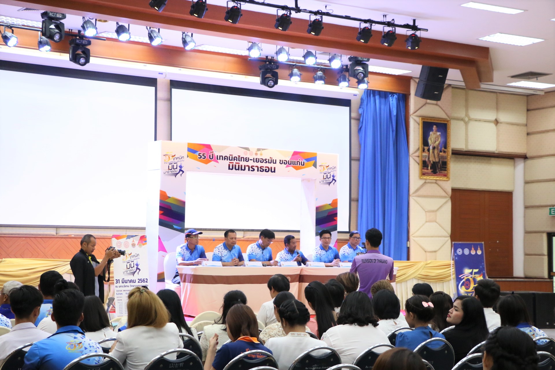 วันศุกร์ที่ 8 มีนาคม 2562 อาจารย์ประพันธ์ ยาวระ คณบดีคณะครุศาสตร์อุตสาหกรรม เข้าร่วมงานแถลงข่าว การจัดงาน 55 ปี เทคนิคไทย - เยอรมัน ขอนแก่น มินิมาราธอน ณ ห้องประชุมแคแสด อาคารวิทยบริการและเทคโนโลยีสารสนเทศ ซึ่งจะจัดขึ้นในวันที่ 31 มีนาคม 2562 นี้ ทุกท่านสามารถสมัครวิ่งได้ ณ ห้องประชาสัมพันธ์ ชั้น 1 อาคาร 1 ตั้งแต่เวลา 09.00-16.00 น. ทุกวัน จนถึงวันที่ 15 มีนาคม 2562 (ยกเว้นวันอาทิตย์)