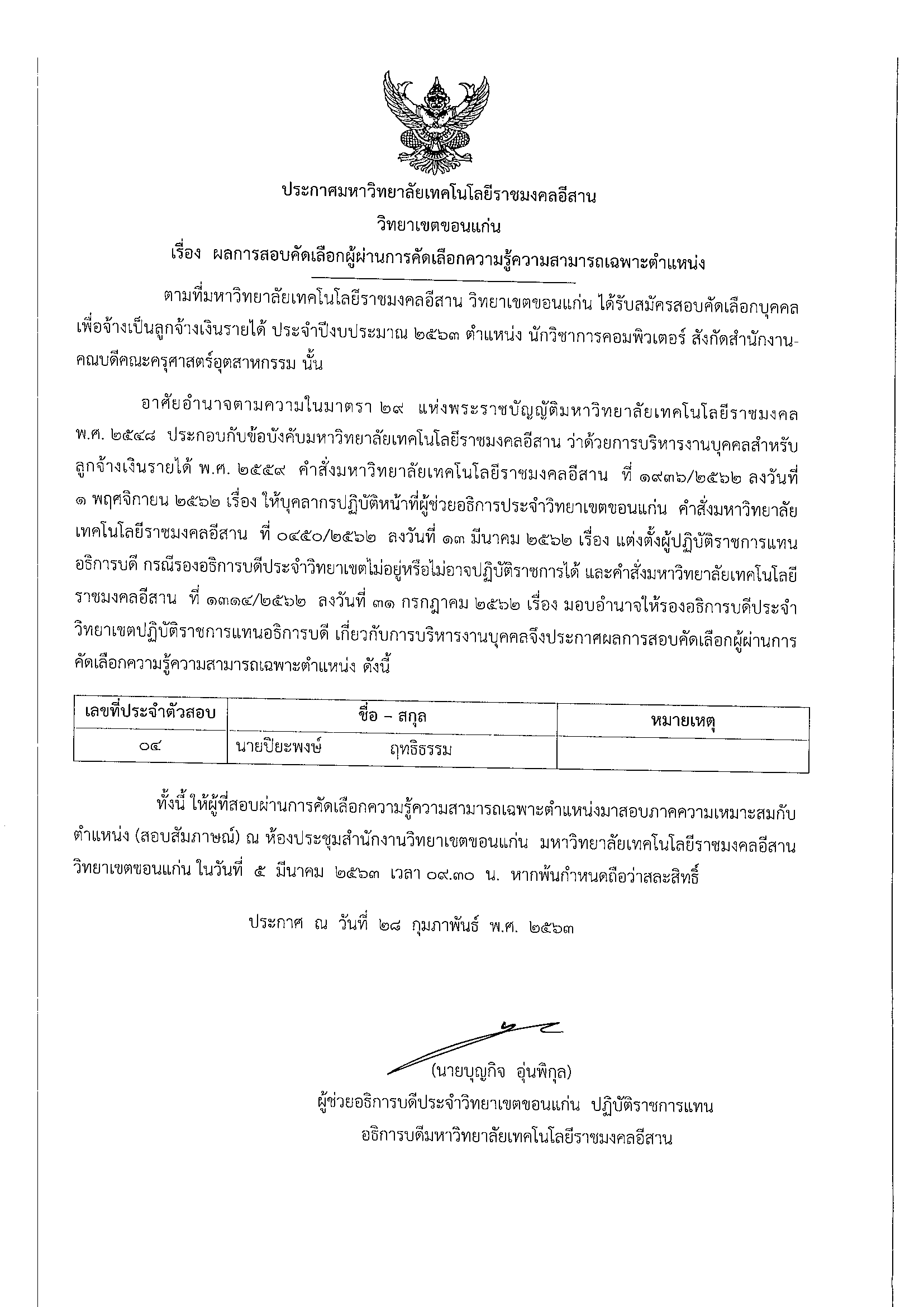 รับสมัคร-ประกาศรายชื่อ-ประกาศผล-สอบคัดเลือกบุคคลเพื่อจ้างเป็นลูกจ้างเงินรายได้ ประจำปีงบประมาณ 2563 ตำแหน่ง นักวิชาการคอมพิวเตอร์ สังกัดคณะครุศาสตร์อุตสาหกรรม