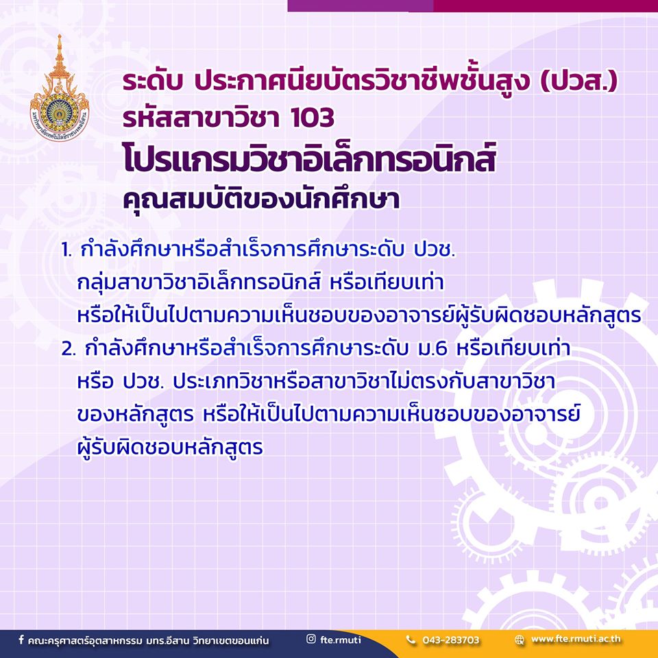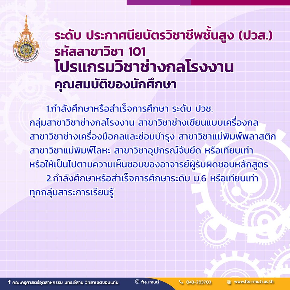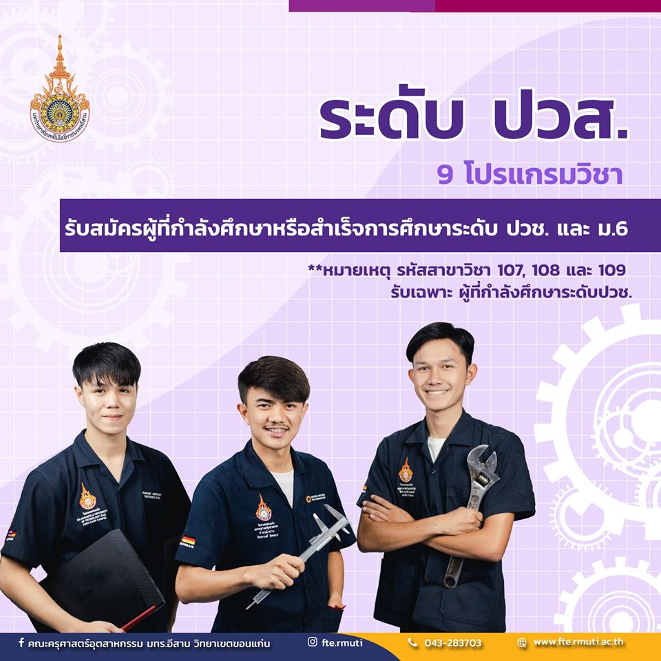 รับสมัครนักศึกษาใหม่ (รอบเพิ่มเติม) ประจำปีการศึกษา 2563 เพื่อเข้าศึกษาต่อ ระดับ ปวส. คณะครุศาสตร์อุตสาหกรรม