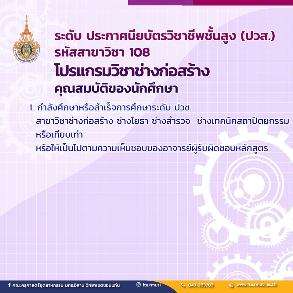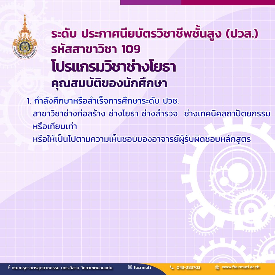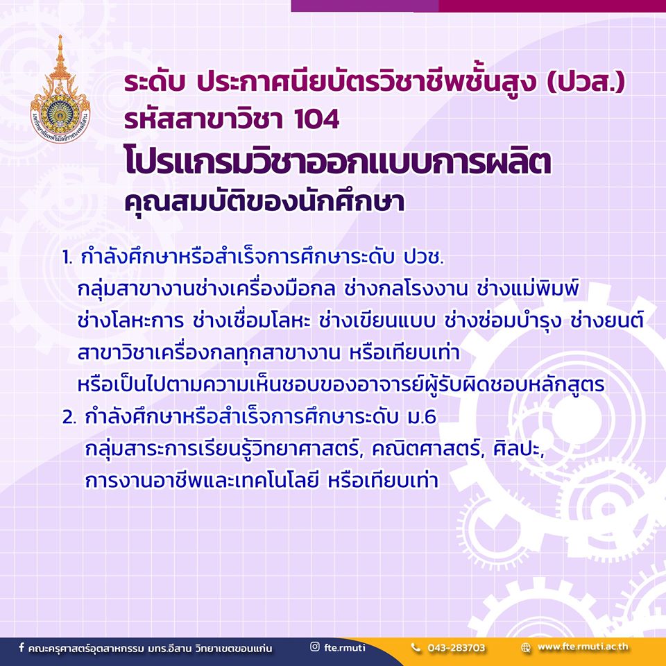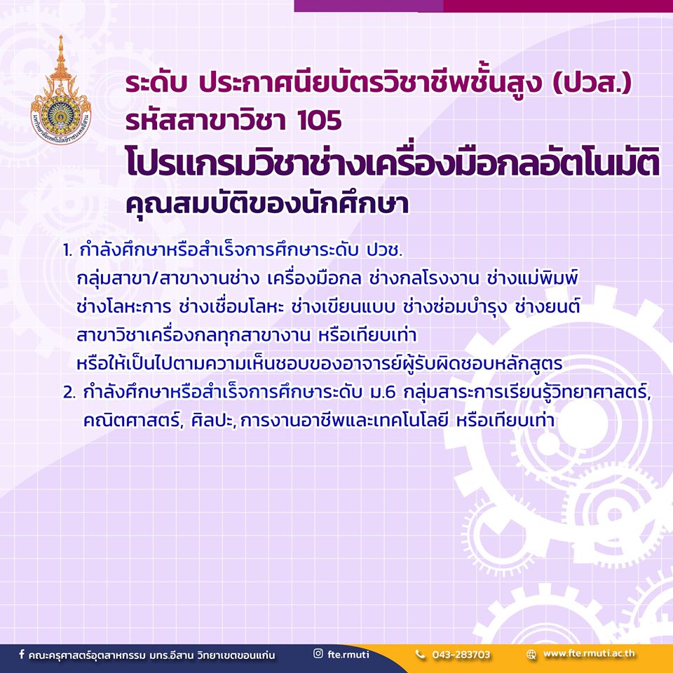 รับสมัครนักศึกษาใหม่ (รอบเพิ่มเติม) ประจำปีการศึกษา 2563 เพื่อเข้าศึกษาต่อ ระดับ ปวส. คณะครุศาสตร์อุตสาหกรรม