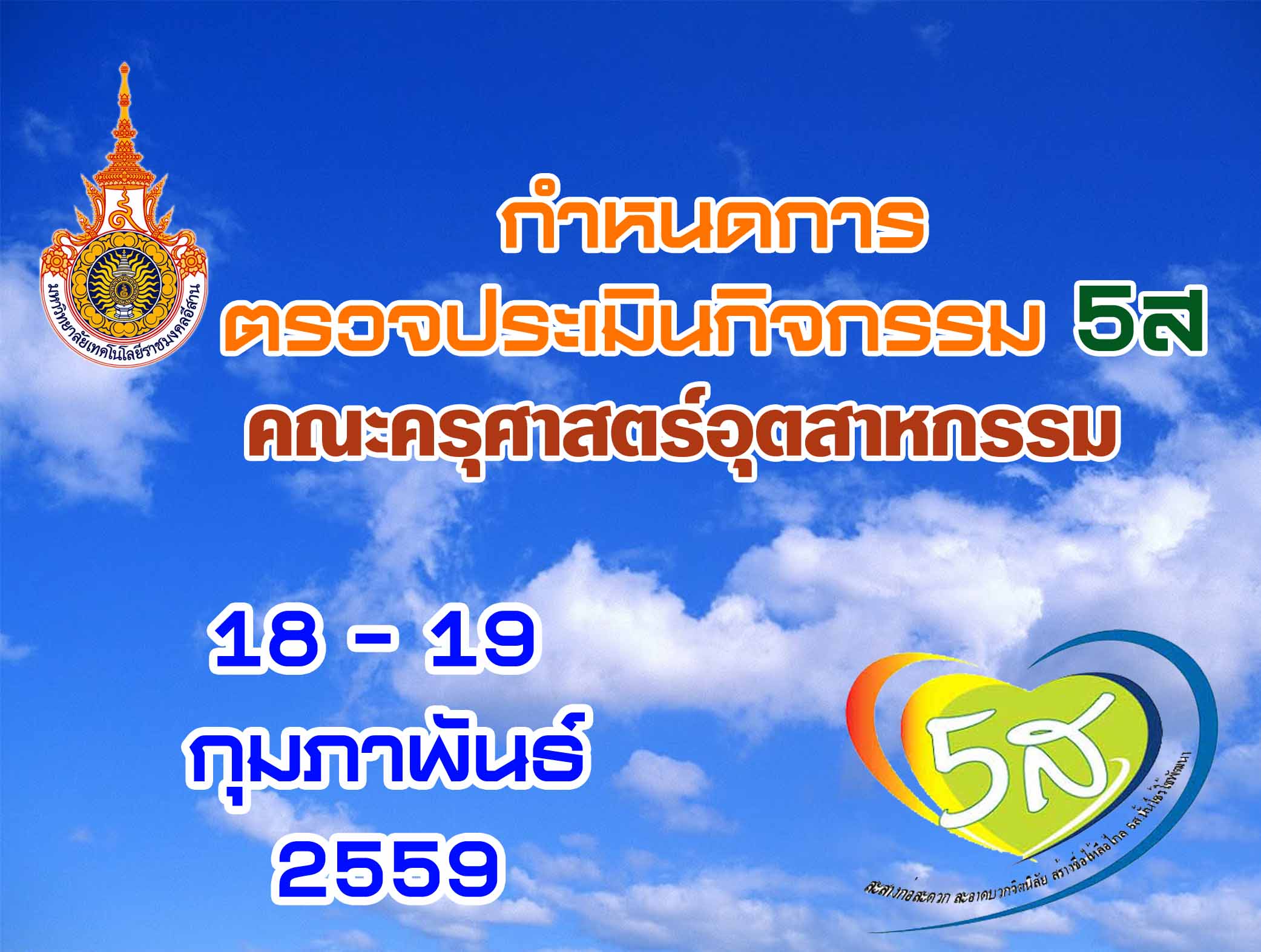 กำหนดการตรวจประเมินกิจกรรม 5ส คณะครุศาสตร์อุตสาหกรรม