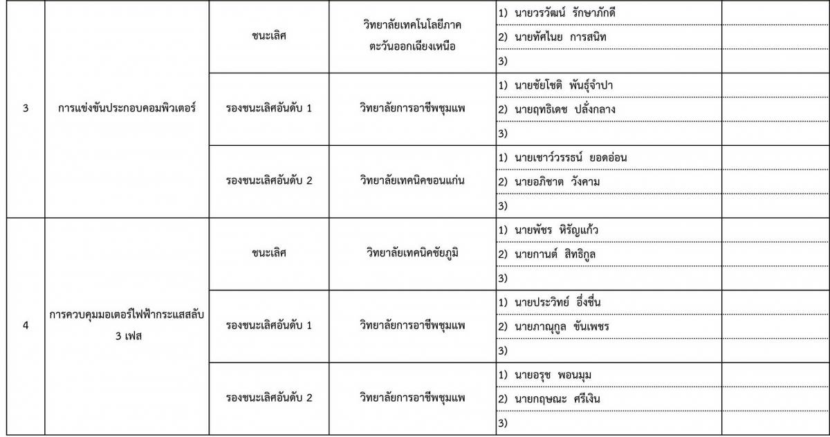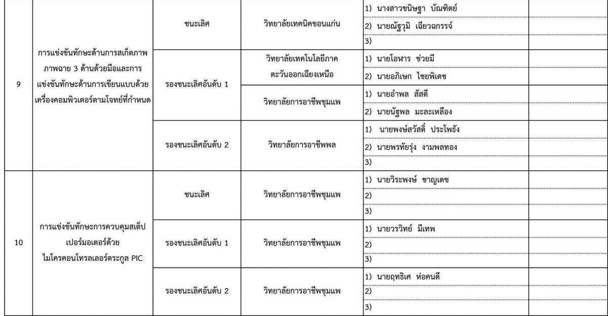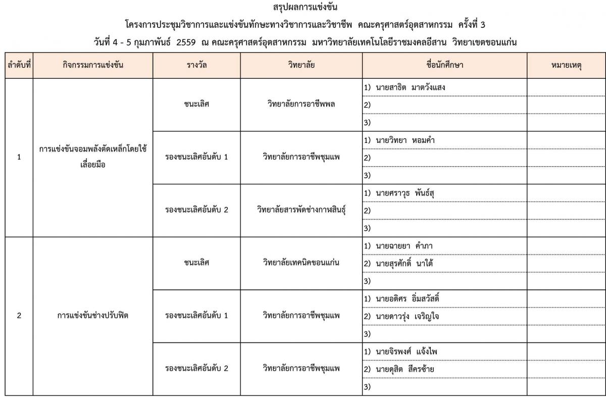 สรุปผลการแข่งขันโครงการประชุมวิชาการและแข่งขันทักษะทางวิชาการและวิชาชีพ ครั้งที่ 3
