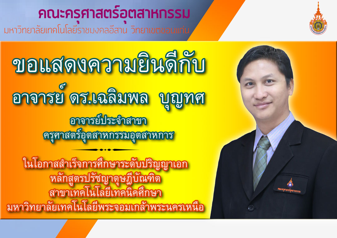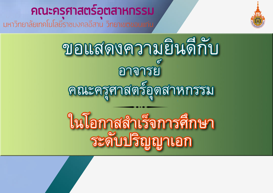 คณะครุศาสตร์อุตสาหกรรม ขอแสดงความยินดีกับอาจารย์ ในโอกาสสำเร็จการศึกษา ระดับปริญญาเอก
