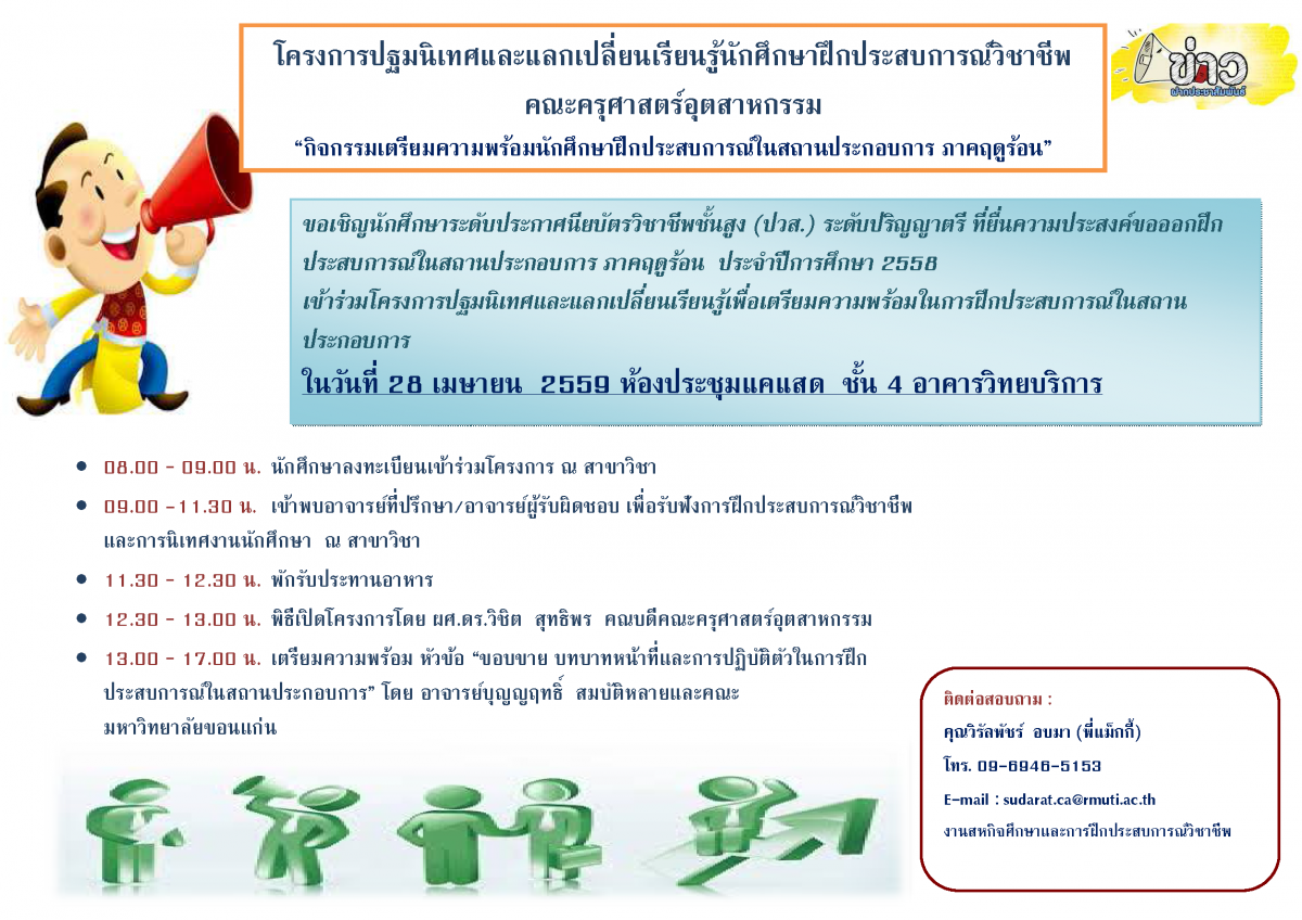 กิจกรรมเตรียมความพร้อมนักศึกษาฝึกประสบการณ์ในสถานประกอบการณ์ ภาคฤดูร้อน