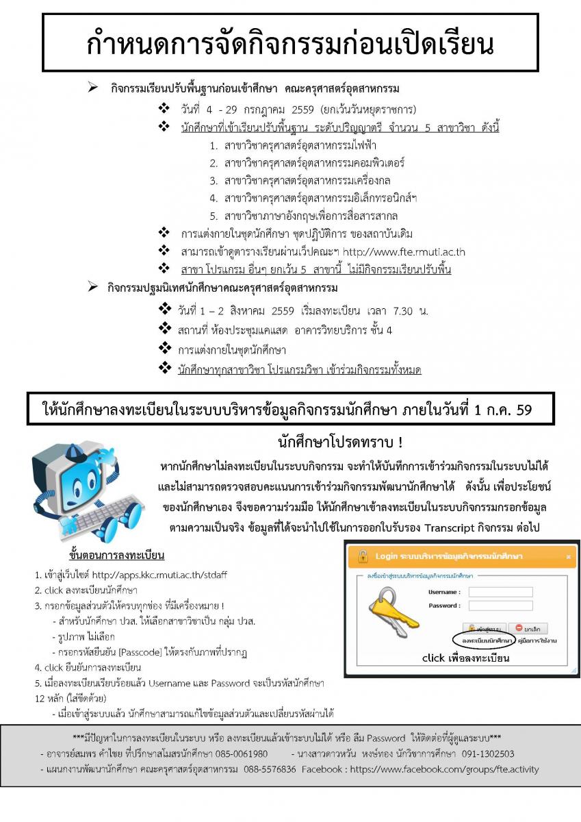 เอกสารที่เกี่ยวข้อง - รายละเอียดการเตรียมความพร้อมนักศึกษาใหม่-2559 - กำหนดการจัดกิจกรรมก่อนเปิดภาคเรียน