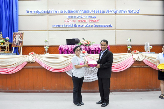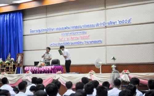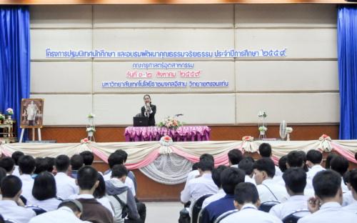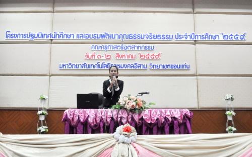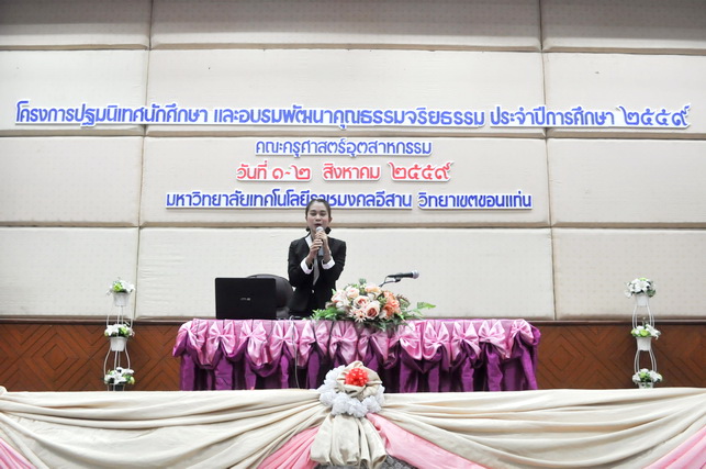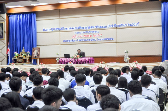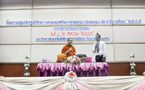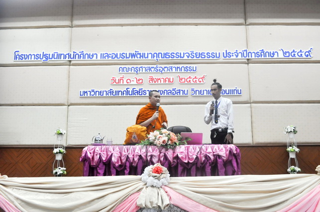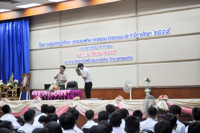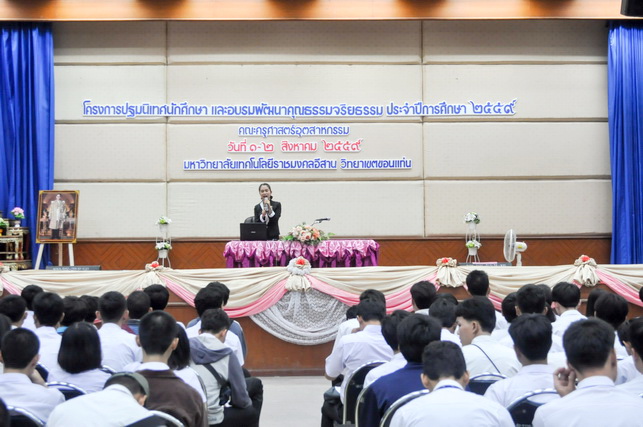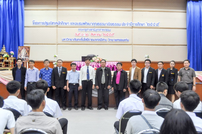คณะครุศาสตร์อุตสาหกรรม มทร.อีสาน วิทยาเขตขอนแก่น  ได้จัดโครงการปฐมนิเทศและอบรมพัฒนาคุณธรรมจริยธรรมนักศึกษา ประจำปีการศึกษา 2559 ในระหว่างวันที่ 2-3 สิงหาคม 2559  ณ  ห้องประชุมแคแสด  อาคารวิทยบริการและเทคโนโลยีสารสนเทศ  เวลา 09.00 น.  ผศ.ดร.โอภาส  รักษาบุญ  รองคณบดีฝ่ายวิชาการและวิจัย  เป็นประธานในพิธีเปิดโครงการฯและให้โอวาทแก่นักศึกษาใหม่ และกล่าวรายงานโดย  อาจารย์สมภพ  อนันตศานต์  รองคณบดีฝ่ายพัฒนานักศึกษา ผู้เข้าร่วมโครงการฯ ได้แก่ นักศึกษาระดับปวส.จำนวน  432  คน  และระดับปริญญาตรี  จำนวน  463  คน  รวมทั้งสิ้น 895  คน  โดยโครงการฯ ดังกล่าว  มีวัตถุประสงค์เพื่อให้ความรู้เกี่ยวกับการเตรียมความพร้อมเพื่อเข้าศึกษาในมหาวิทยาลัย เกิดความรู้ความเข้าใจในกฎ ระเบียบ ข้อบังคับต่างๆของสถาบัน ตลอดทั้งพัฒนาคุณธรรมและจริยธรรม เพื่อให้สามารถอยู่ร่วมกันในสังคมได้อย่างมีความสุขและยั่งยืน