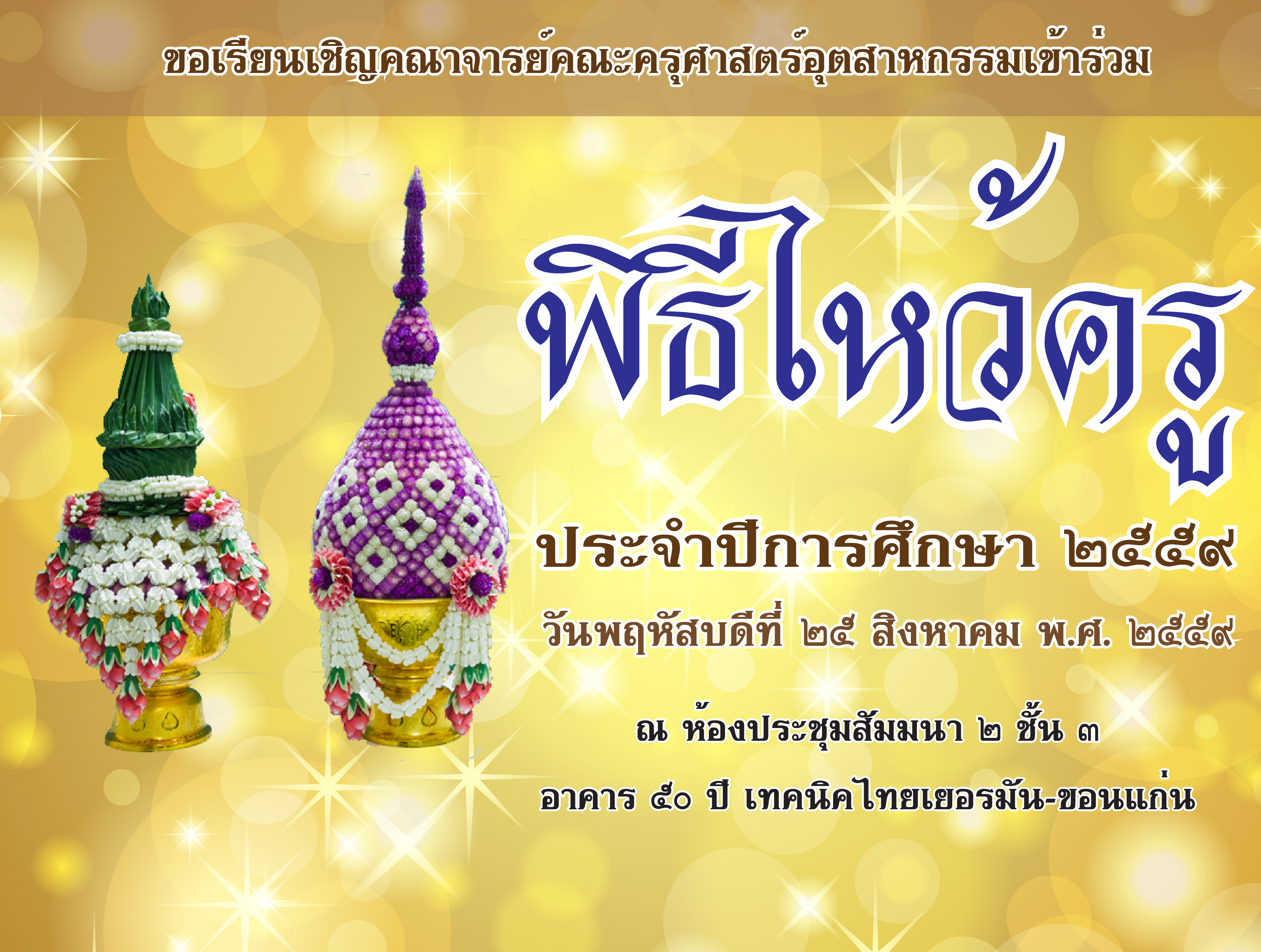 ขอเรียนเชิญคณาจารย์เข้าร่วมพิธีไหว้ครู ประจำปีการศึกษา 2559