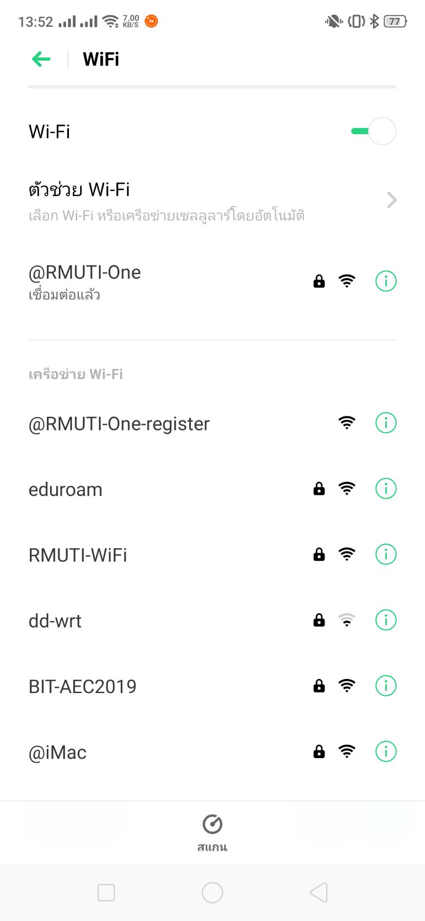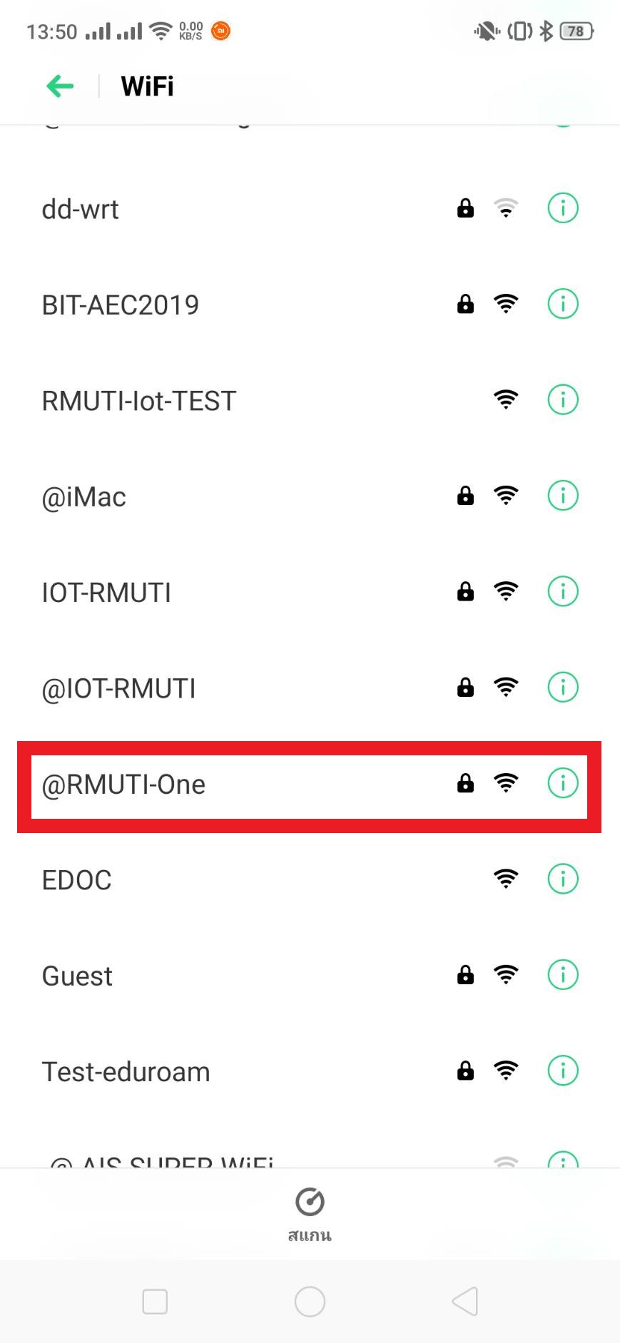 1. เชื่อมต่อ WIFI เลือก SSID ชื่อ @RMUTI-One