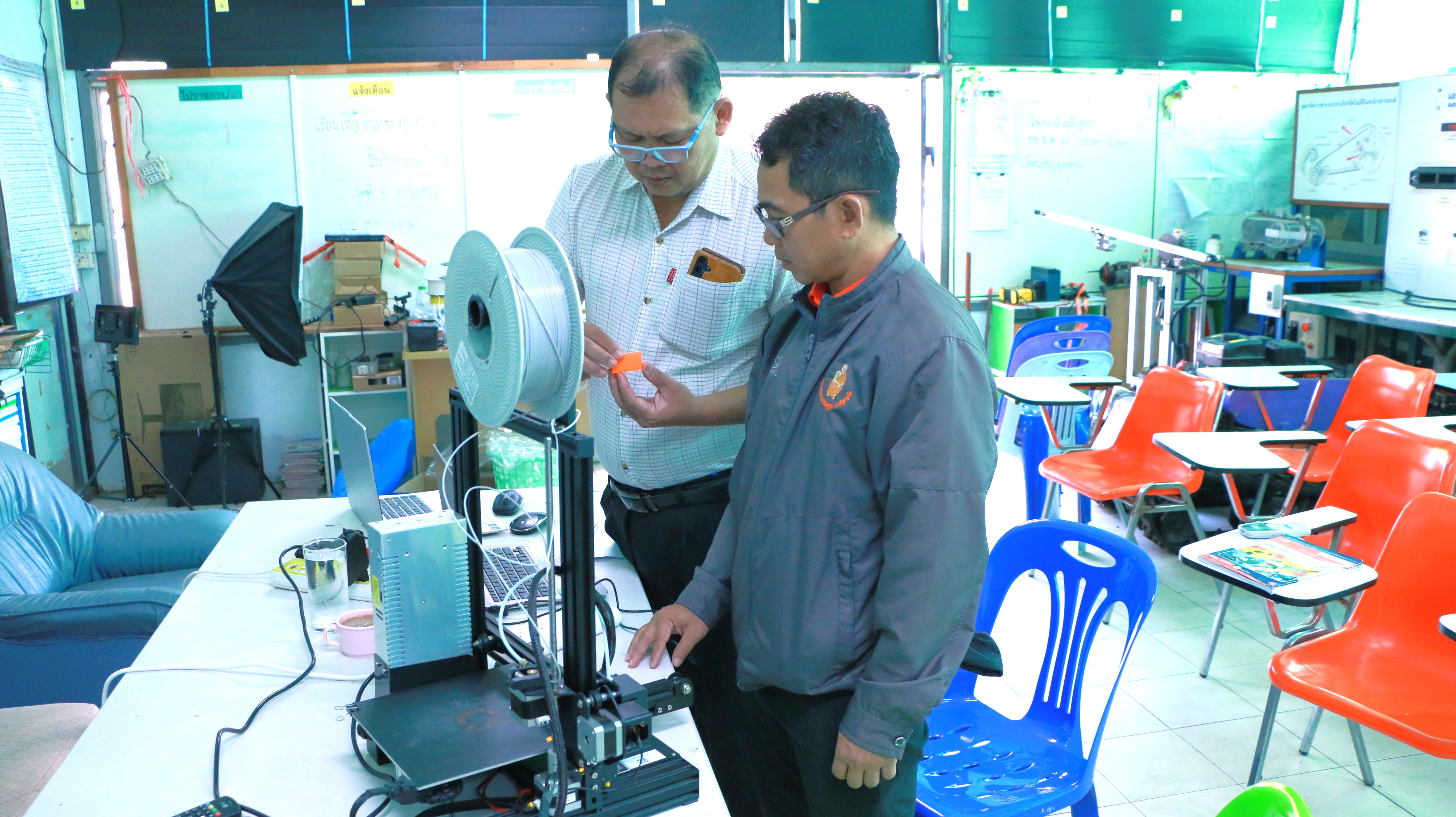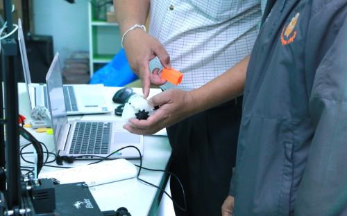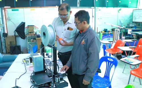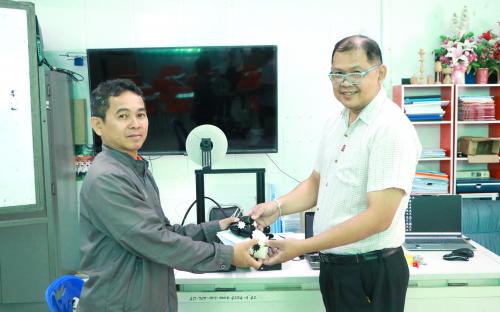 ในโอกาสนี้ อาจารย์ไตรทศ แก้วเหง้า อาจารย์ประจำสาขาวิชาครุศาสตร์อุตสาหกรรมเครื่องกล ได้แนะนำวิธีการใช้งานงานเครื่อง 3D Printer เพื่อให้สามารถใช้ออกแบบชิ้นงานต้นแบบ (Prototype) รวมถึงฝึกทักษะการผลิตชิ้นงานด้วยวัสดุหลากหลายประเภทได้อย่างมีประสิทธิภาพ ซึ่งเทคโนโลยีการพิมพ์สามมิติ (3D Printing) นับเป็นส่วนสำคัญในการพัฒนาทักษะด้านช่างกลโรงงานและวิศวกรรมการผลิตให้ทันสมัย และยังสอดคล้องกับความต้องการของภาคอุตสาหกรรม