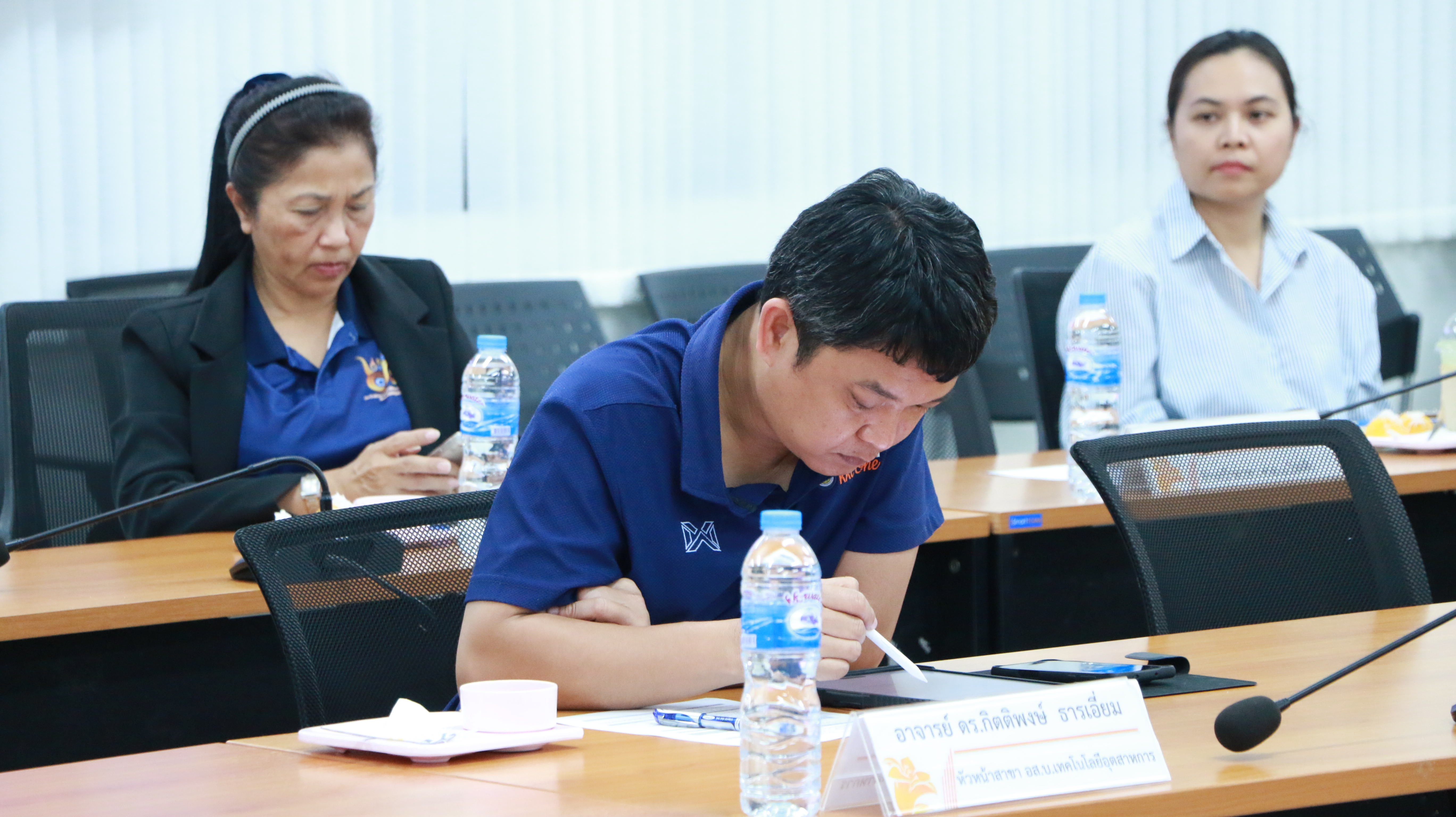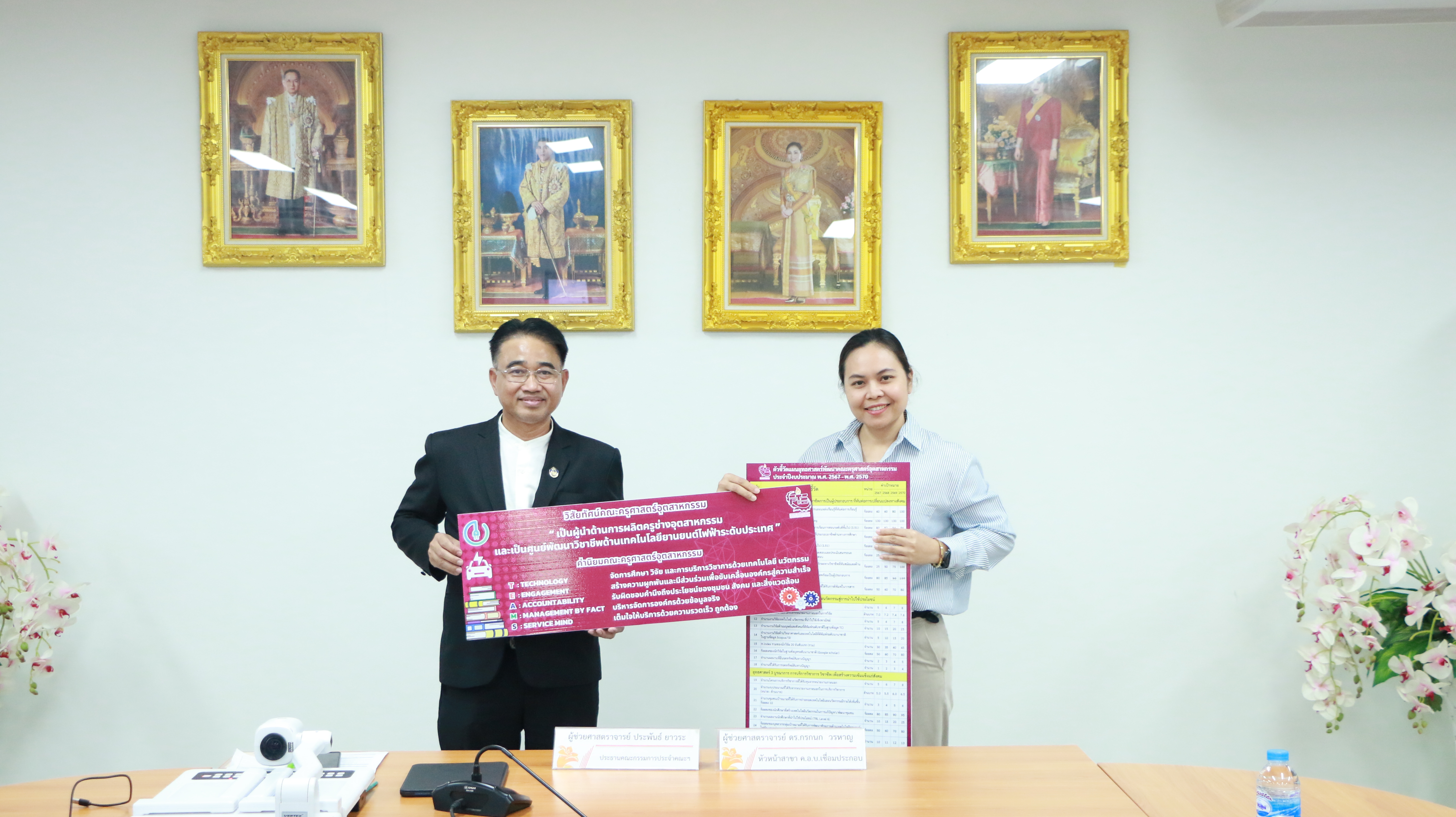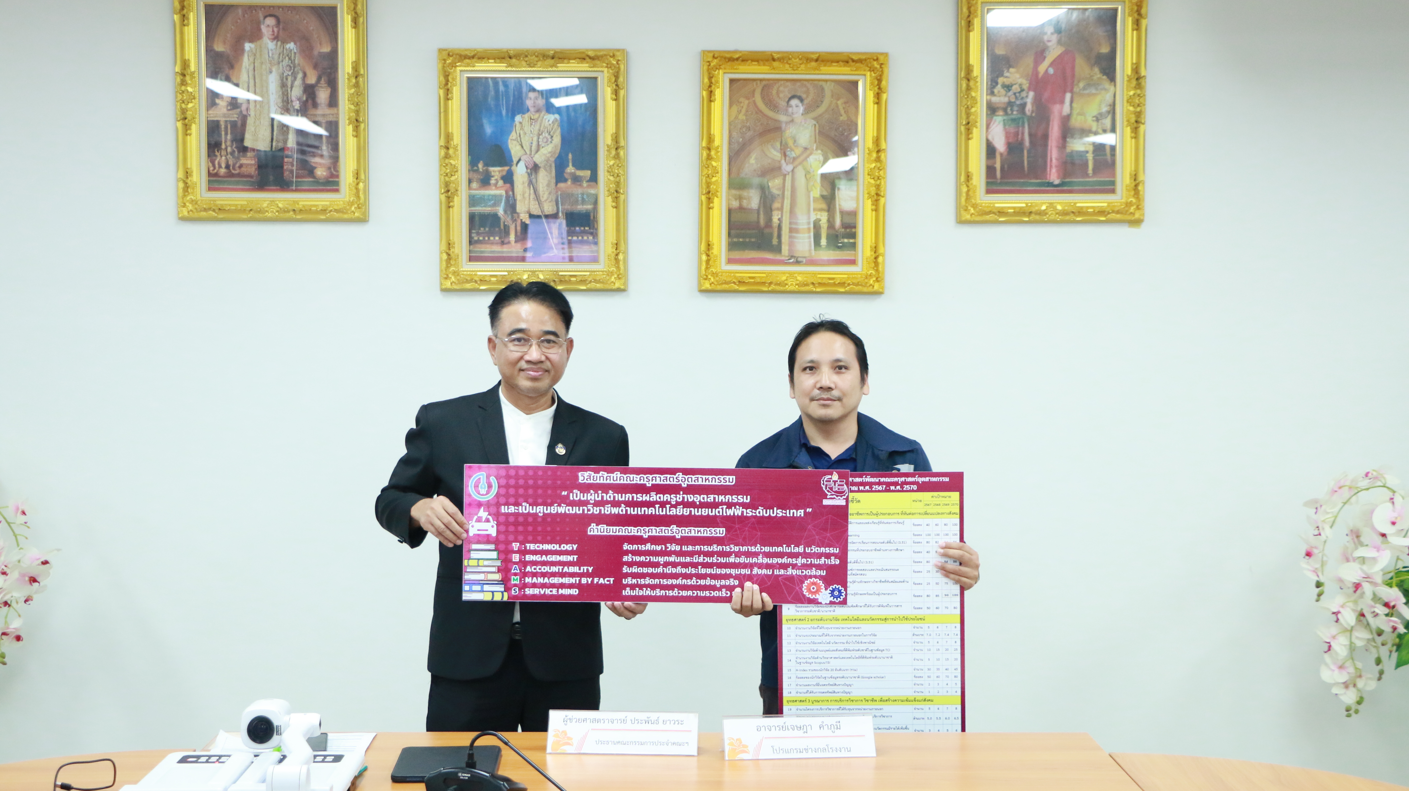 วันที่ 22 มกราคม 2568 คณะครุศาสตร์อุตสาหกรรม จัดการประชุมกรรมการประจำคณะฯ ครั้งที่ 1/2568 เพื่อหารือและพิจารณาแนวทางการพัฒนาคุณภาพการศึกษา การจัดการเรียนการสอน ผลการดำเนินงานในรอบเดือนที่ผ่านมา รวมถึงการพิจารณาและวางแผนการดำเนินงานในโครงการสำคัญต่าง ๆ ที่เกี่ยวข้องกับการพัฒนาการเรียนการสอน การวิจัย และการบริการวิชาการ โดยมี ผู้ช่วยศาสตราจารย์ประพันธ์ ยาวระ รองอธิการบดีประจำวิทยาเขตขอนแก่น รักษาราชการแทนคณบดีคณะครุศาสตร์อุตสาหกรรม เป็นประธานในที่ประชุมฯ พร้อมด้วยคณะผู้บริหาร กรรมการประจำคณะฯ เข้าร่วมประชุมในครั้งนี้ ณ ห้องประชุมสำนักงานคณบดีคณะครุศาสตร์อุตสาหกรรม อาคาร 19 ชั้น 3 โอกาสนี้ได้มอบป้ายแสดงวิสัยทัศน์และพันธกิจของคณะครุศาสตร์อุตสาหกรรมให้กับสาขาวิชาต่าง ๆ เพื่อให้คณาจารย์และนักศึกษาได้ตระหนักถึงทิศทางและเป้าหมายในการพัฒนาการเรียนการสอน ตลอดจนสามารถนำนโยบายหลักของคณะไปปฏิบัติได้อย่างเป็นรูปธรรม