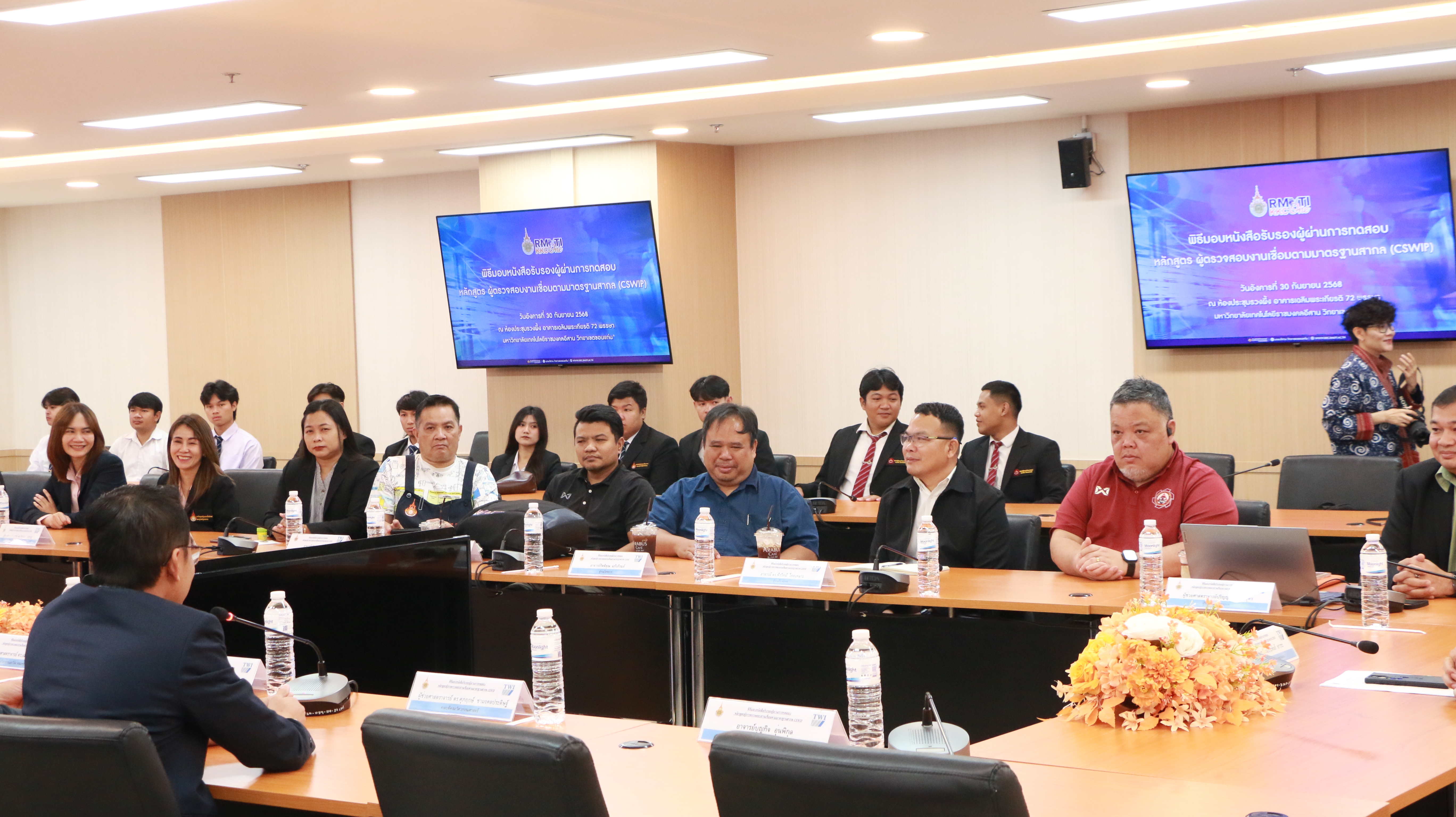 วันที่ 30 กันยายน 2568 คณะครุศาสตร์อุตสาหกรรม มหาวิทยาลัยเทคโนโลยีราชมงคลอีสาน วิทยาเขตขอนแก่น ร่วมแสดงความยินดีแก่นักศึกษาที่สอบผ่านหลักสูตรผู้ตรวจสอบงานเชื่อมมาตรฐานสากล (CSWIP) ณ ห้องประชุมรวงผึ้ง อาคารเฉลิมพระเกียรติ 72 พรรษา เพื่อเชิดชูความสามารถของนักศึกษาที่ได้ยกระดับตนเองสู่มาตรฐานวิชาชีพในระดับนานาชาติ