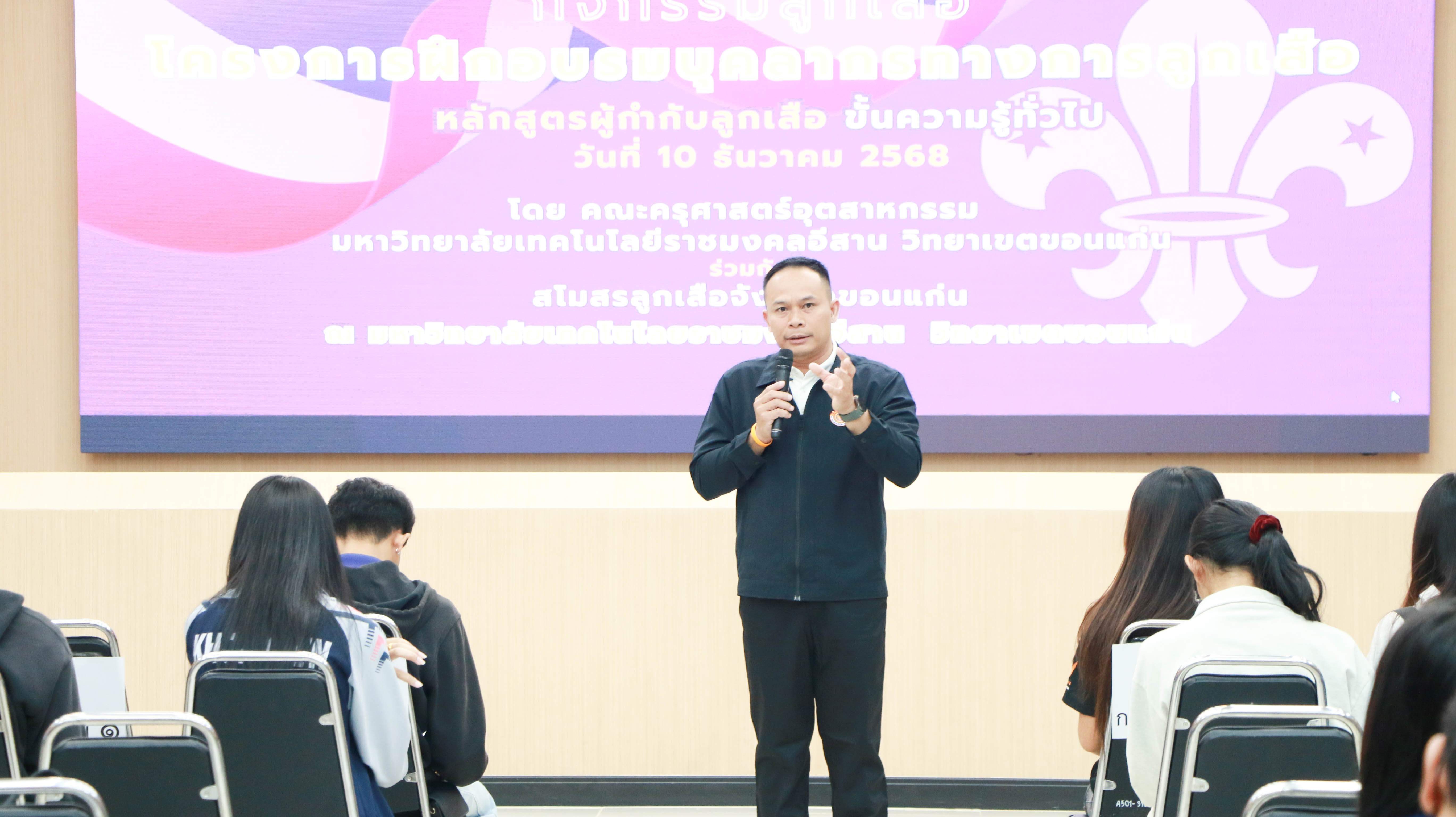 วันที่ 10 ธันวาคม 2568 คณะครุศาสตร์อุตสาหกรรม มหาวิทยาลัยเทคโนโลยีราชมงคลอีสาน วิทยาเขตขอนแก่น จัดโครงการฝึกอบรมบุคลากรทางลูกเสือ หลักสูตรผู้กำกับลูกเสือขั้นความรู้ทั่วไป (Basic Training Course: B.T.C.) ณ ห้องประชุมนราธิเบศร์ อาคารเฉลิมพระเกียรติ 72 พรรษา (อาคาร 19) ให้แก่นักศึกษาของคณะฯ เพื่อเตรียมความพร้อมให้บัณฑิตเป็นผู้ที่มีความรู้ ความเข้าใจ และทักษะในการดำเนินกิจการลูกเสือตามหลักสูตรอย่างถูกต้อง