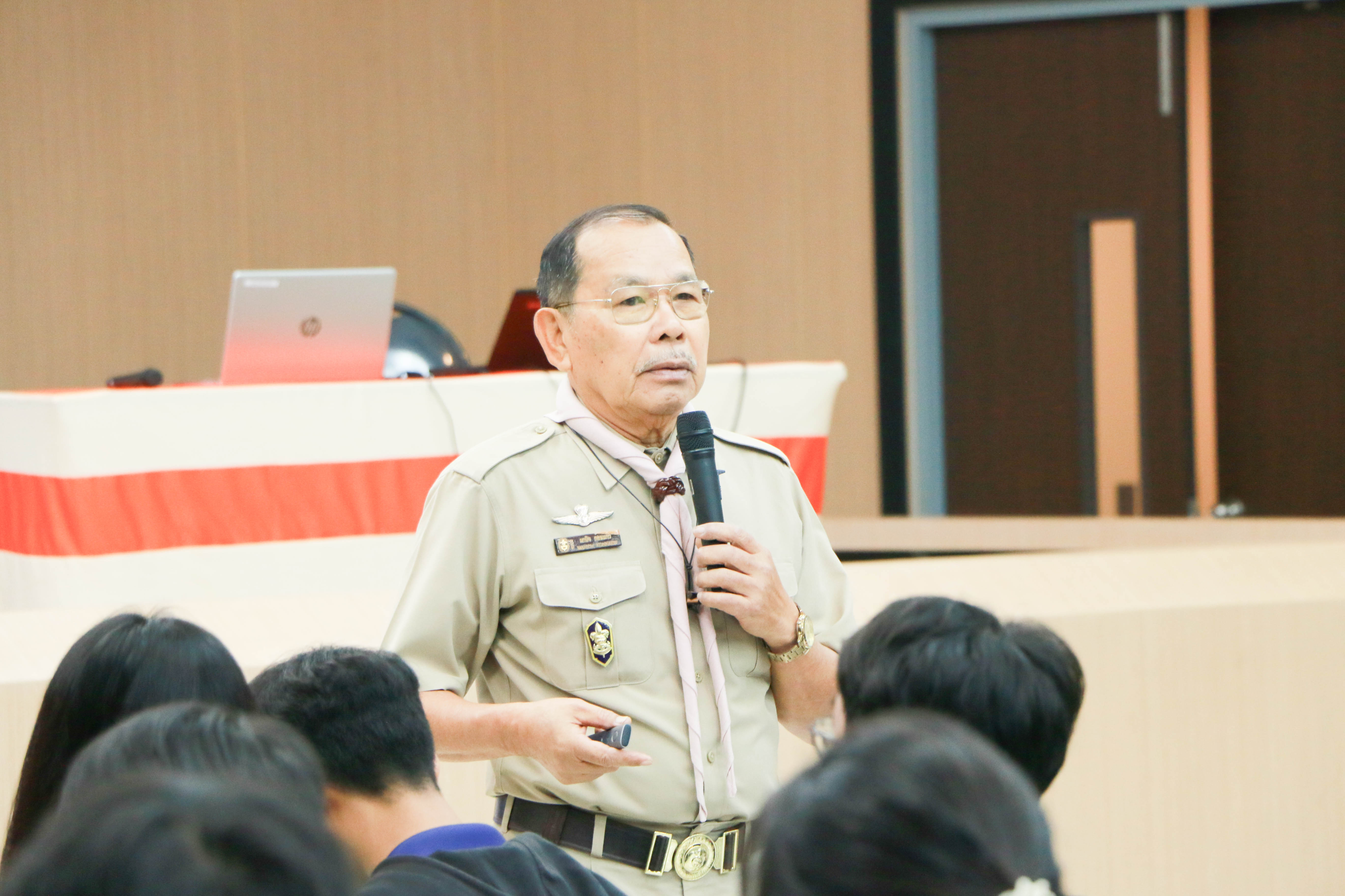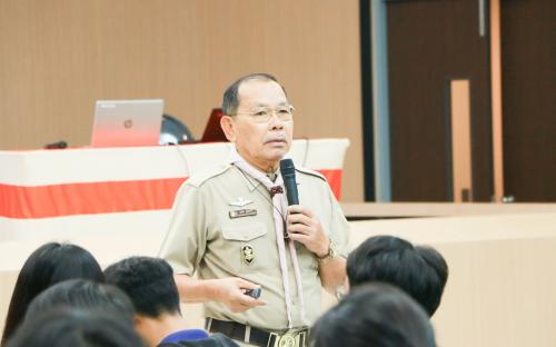 โครงการนี้ได้รับความอนุเคราะห์อย่างสูงจาก คณะวิทยากรผู้ทรงคุณวุฒิจากสำนักงานลูกเสือจังหวัดขอนแก่น มาร่วมถ่ายทอดความรู้และฝึกปฏิบัติทักษะทางลูกเสืออย่างเข้มข้น ซึ่งจะช่วยให้นักศึกษาของคณะฯ ได้รับการฝึกฝนจากผู้เชี่ยวชาญที่มีประสบการณ์ตรงในกิจการลูกเสือ และได้รับเกียรติจาก ผศ.ดร.วิรัช ชินพลอย คณบดีคณะครุศาสตร์อุตสาหกรรม พร้อมด้วยผู้บริหาร คณาจารย์ บุคลากร ร่วมกล่าวต้อนรับคณะวิทยากรฯ และให้โอวาทแก่นักศึกษาก่อนการเริ่มอบรม โดยเนื้อหาของการอบรมหลักสูตรขั้นความรู้ทั่วไป มุ่งเน้นการให้ความรู้พื้นฐานเกี่ยวกับกิจการลูกเสือ อาทิเช่น ประวัติและความเป็นมาและอุดมการณ์ของกิจการลูกเสือโลกและลูกเสือไทย , โครงสร้างและองค์กรของคณะลูกเสือแห่งชาติ บทบาท หน้าที่ และความรับผิดชอบของผู้บังคับบัญชาลูกเสือ , วิธีการฝึกอบรมลูกเสือ การให้ความรู้และทักษะที่จำเป็นในการจัดกิจกรรมลูกเสือตามประเภทต่าง ๆ เพื่อปลูกฝังคุณธรรม จริยธรรม และความเป็นพลเมืองดี เป็นต้น