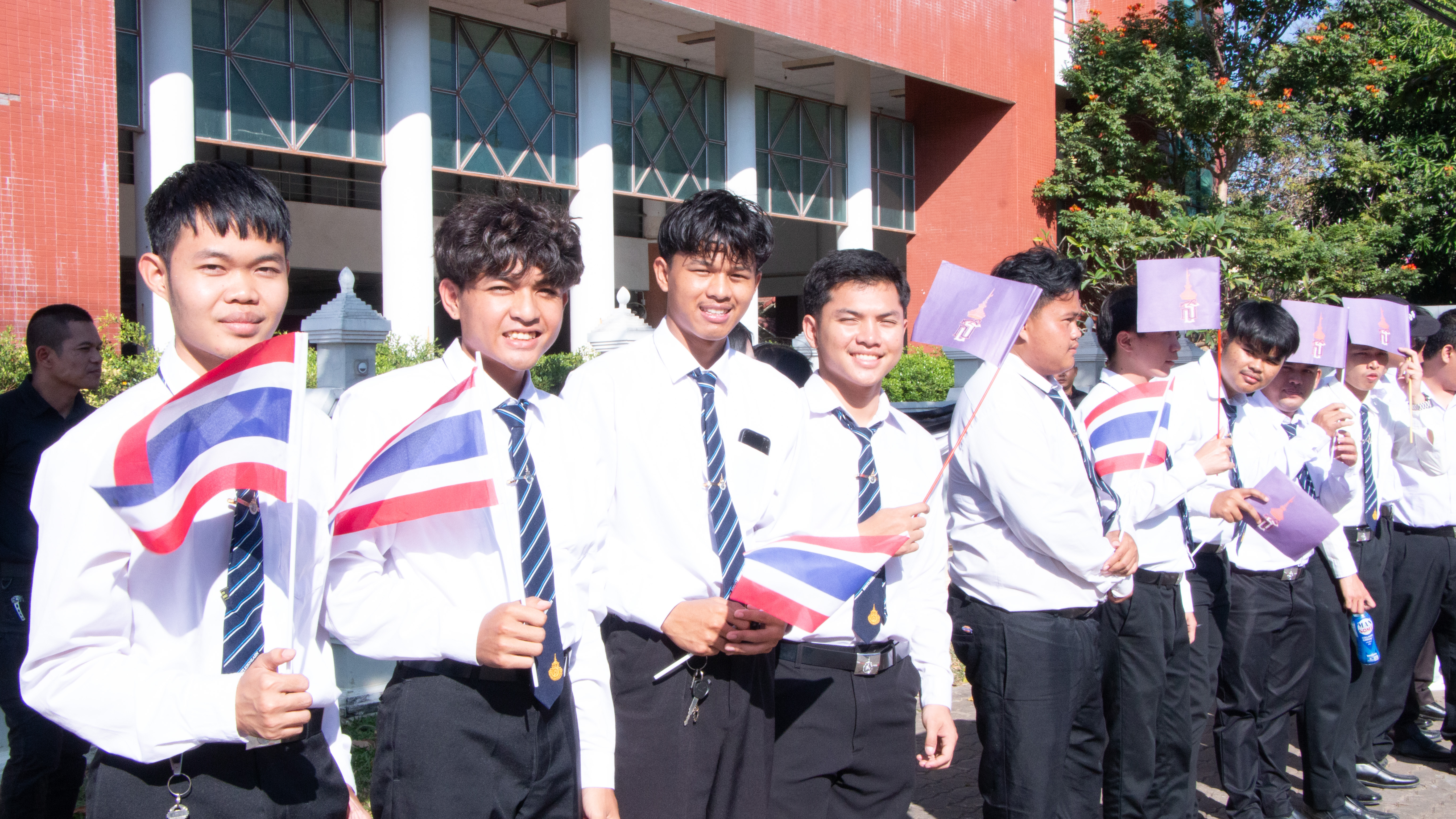 วันที่ 18 ธันวาคม 2568 คณะครุศาสตร์อุตสาหกรรม มหาวิทยาลัยเทคโนโลยีราชมงคลอีสาน วิทยาเขตขอนแก่น นำโดยคณะผู้บริหาร คณาจารย์ บุคลากร และนักศึกษา ร่วมเฝ้าทูลละอองพระบาทรับเสด็จ สมเด็จพระกนิษฐาธิราชเจ้า กรมสมเด็จพระเทพรัตนราชสุดาฯ สยามบรมราชกุมารี ณ บริเวณด้านหน้ามหาวิทยาลัยฯ ถนนศรีจันทร์ ในโอกาสที่พระบาทสมเด็จพระเจ้าอยู่หัว ทรงพระกรุณาโปรดเกล้าโปรดกระหม่อมให้ สมเด็จพระกนิษฐาธิราชเจ้า กรมสมเด็จพระเทพรัตนราชสุดาฯ สยามบรมราชกุมารี เสด็จพระราชดำเนินแทนพระองค์ ในพิธีพระราชทานปริญญาบัตรแก่ผู้สำเร็จการศึกษาจากมหาวิทยาลัยขอนแก่น ประจำปี พ.ศ. 2568 ณ อาคารศูนย์ประชุมอเนกประสงค์กาญจนาภิเษก มหาวิทยาลัยขอนแก่น โดยการร่วมเฝ้าทูลละอองพระบาทรับเสด็จในครั้งนี้ คณะครุศาสตร์อุตสาหกรรมได้คณะบุคลากรและนักศึกษาแต่งกายด้วยชุดสุภาพและชุดนักศึกษาอย่างเป็นระเบียบเรียบร้อย เพื่อแสดงออกถึงความจงรักภักดีต่อสถาบันพระมหากษัตริย์ บริเวณริมถนนศรีจันทร์ หน้ามหาวิทยาลัยฯ ซึ่งเป็นเส้นทางเสด็จพระราชดำเนิน