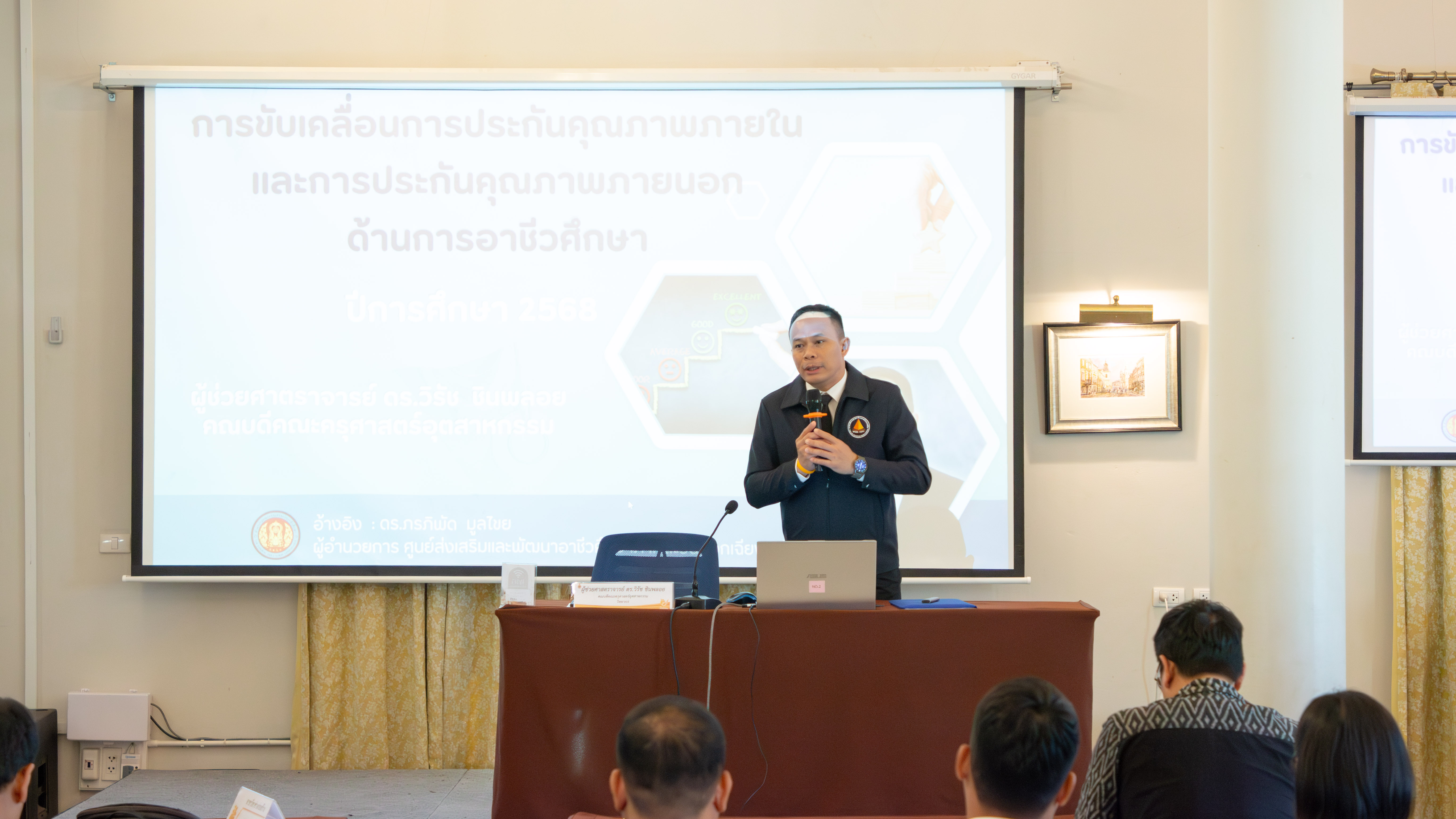 การอบรมในครั้งนี้มุ่งเน้นถึงความถูกต้อง แม่นยำ และเป็นไปตามเกณฑ์มาตรฐานของอาชีวศึกษา อาทิ การรวบรวมข้อมูลและเขียนรายงานการประเมินตนเอง (SAR) ให้ครอบคลุมทุกมาตรฐาน เพื่อให้เห็นภาพรวมการพัฒนาคุณภาพผู้เรียน การจัดการอาชีวศึกษา และการสร้างสังคมแห่งการเรียนรู้ของคณะฯ อย่างรอบด้าน , การเจาะลึกการรายงานผล R1 และ R2 เพื่อให้ได้ข้อมูลเชิงสถิติและผลสัมฤทธิ์ที่ถูกต้อง ชัดเจน พร้อมสำหรับการตรวจสอบและนำไปใช้พัฒนาแผนการดำเนินงานในอนาคต และการ Workshop แบ่งกลุ่มปฏิบัติจริง เพื่อให้บุคลากรได้ร่วมกันฝึกปฏิบัติการเขียนร่าง SAR ในแต่ละมาตรฐาน โดยมีการระดมสมองเพื่อวิเคราะห์จุดแข็งและจุดที่ควรพัฒนา เพื่อให้รายงานสะท้อนคุณภาพที่แท้จริงของคณะครุศาสตร์อุตสาหกรรม
