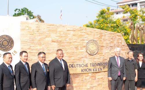 โอกาสนี้ ดร. แอ็นสท์ ไรเชิล เอกอัครราชทูตฯ ได้ร่วมพบปะพูดคุยกับคณะผู้บริหารและคณาจารย์ผู้ผ่านการฝึกอบรมหลักสูตร German-Meister ซึ่งเป็นบุคลากรสำคัญในการรักษามาตรฐานการเรียนการสอนแบบเยอรมันให้คงอยู่และก้าวทันเทคโนโลยีสมัยใหม่ และปิดท้ายด้วยการร่วมชมอาคารปฏิบัติการต่าง ๆ ของวิทยาเขตขอนแก่น
